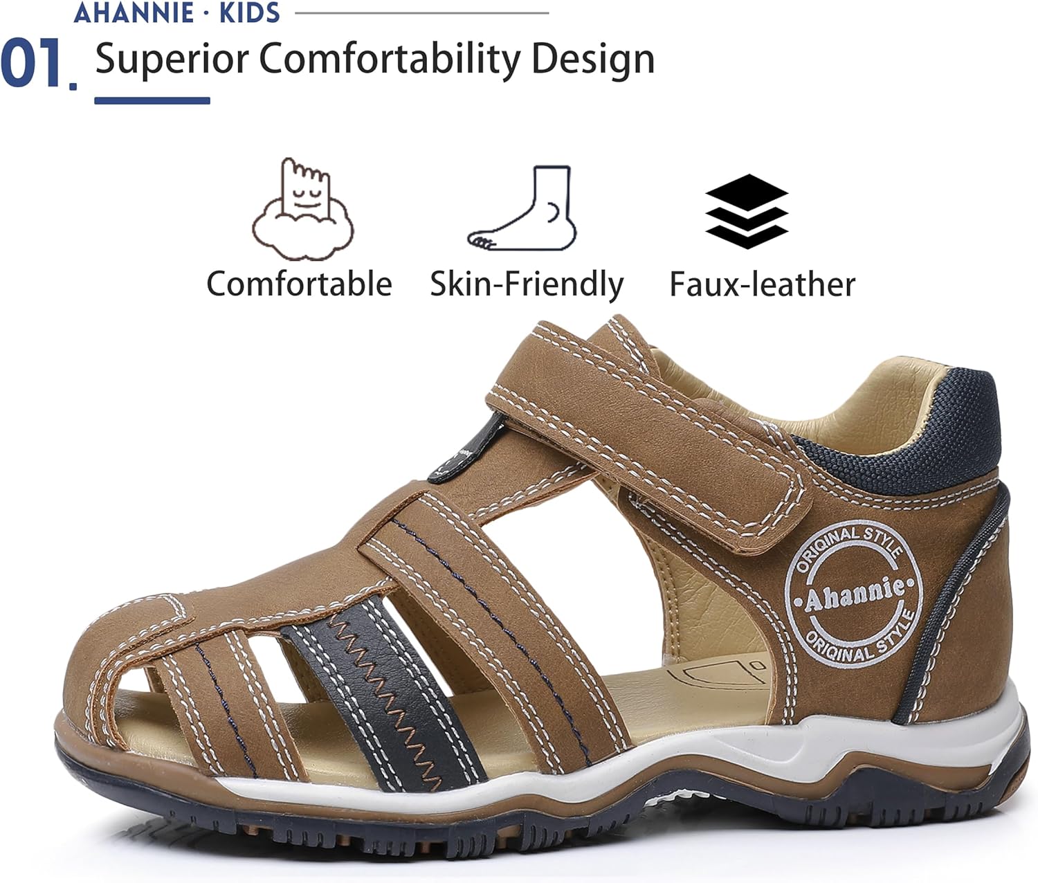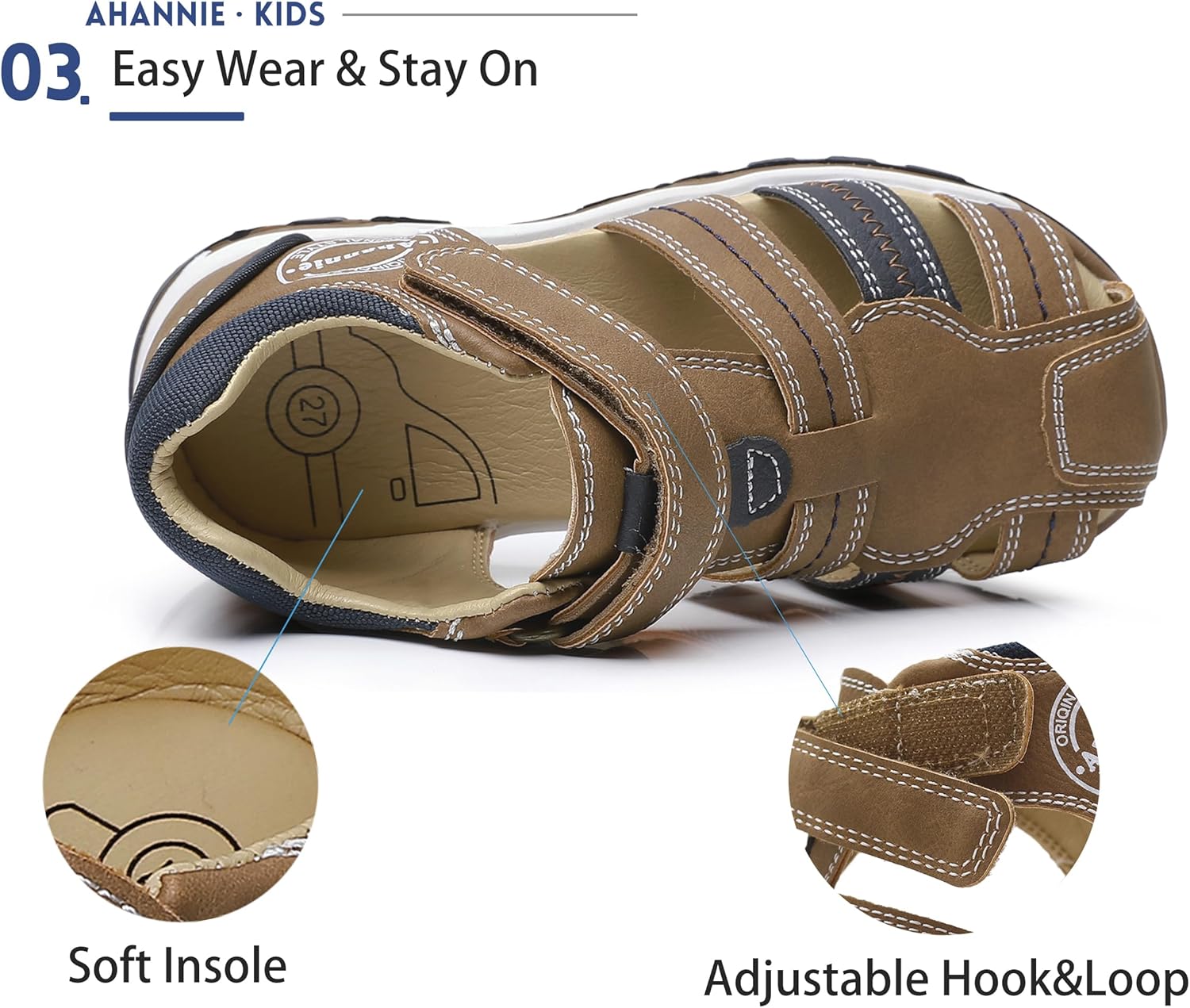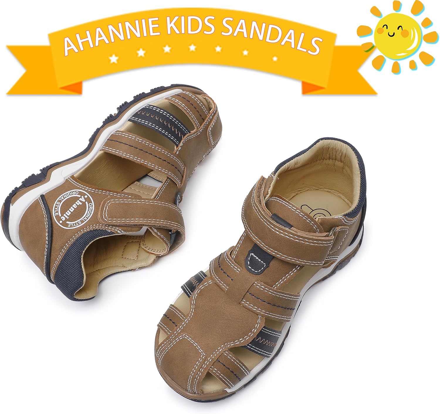 Ahannie Boys Girls Sandals for Toddler & Little Kids Closed Toe Summer Shoes with Hook Loop