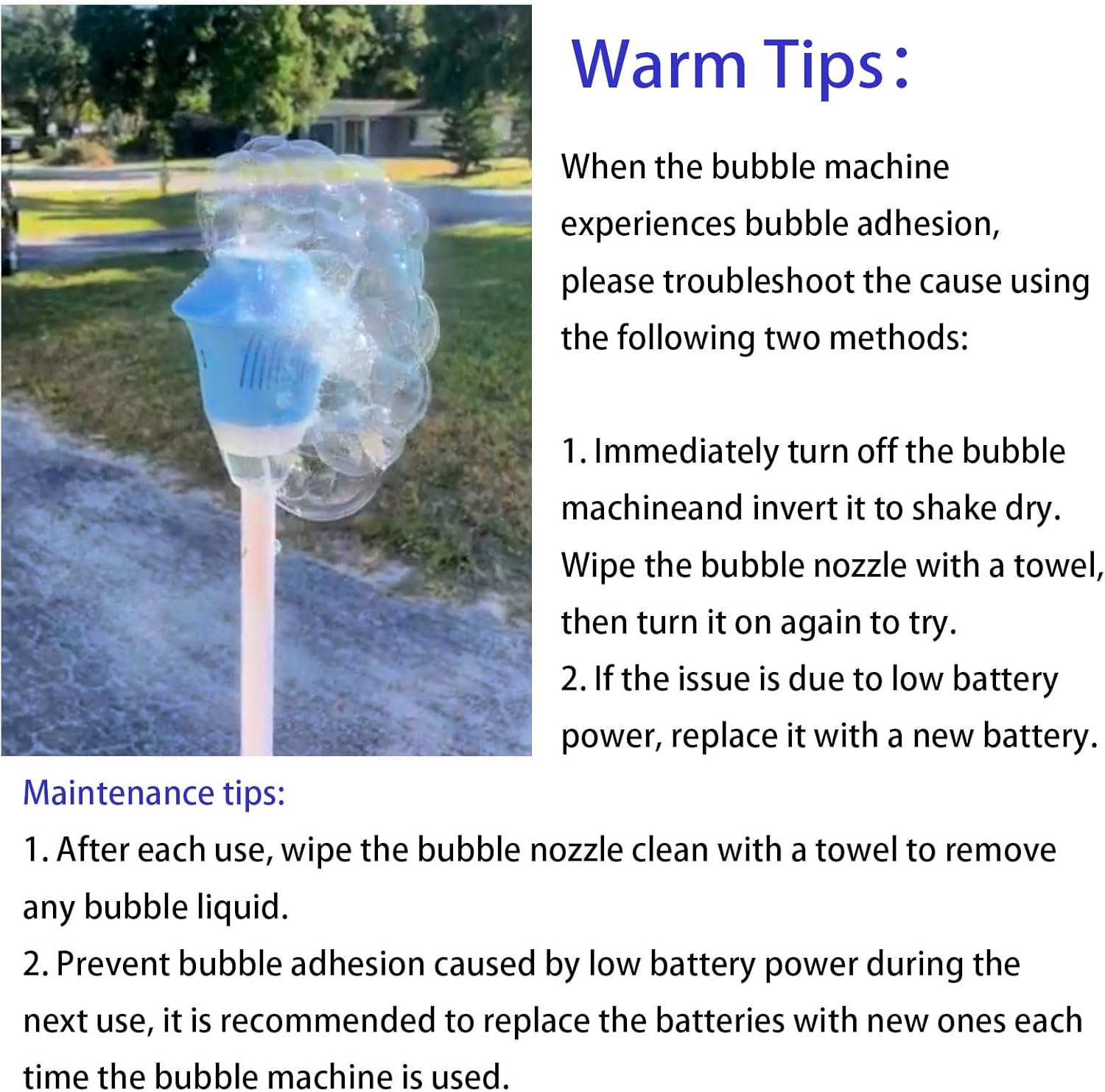 Versatile mobility anytime and wherever: No extra energy twine is required, and it isn’t restricted by energy sockets. The battery-powered design avoids the danger of water or bubble resolution contacting the ability half, permitting you to make use of it with extra peace of thoughts. On the similar time, battery powered bubble machine avoids inconveniences similar to inadequate size of energy twine or inadequate sockets, permitting you to benefit from the magic of bubbles on a inexperienced garden, gentle seaside, or a cheerful get together scene.