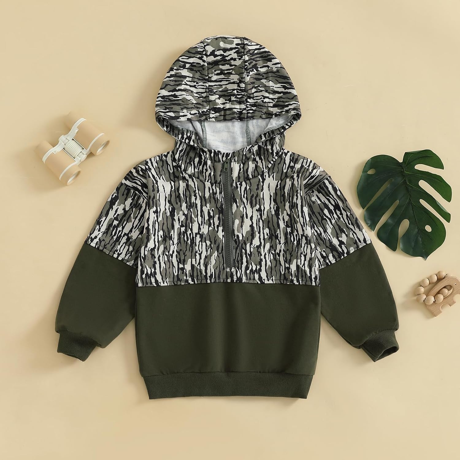 Toddler boy pullover options half zip-up hooded, ribbed cuffs and hemline, and lengthy sleeve design; Paired with distinction striped/withered tree/camo patterns for including a contact of trend to your boys