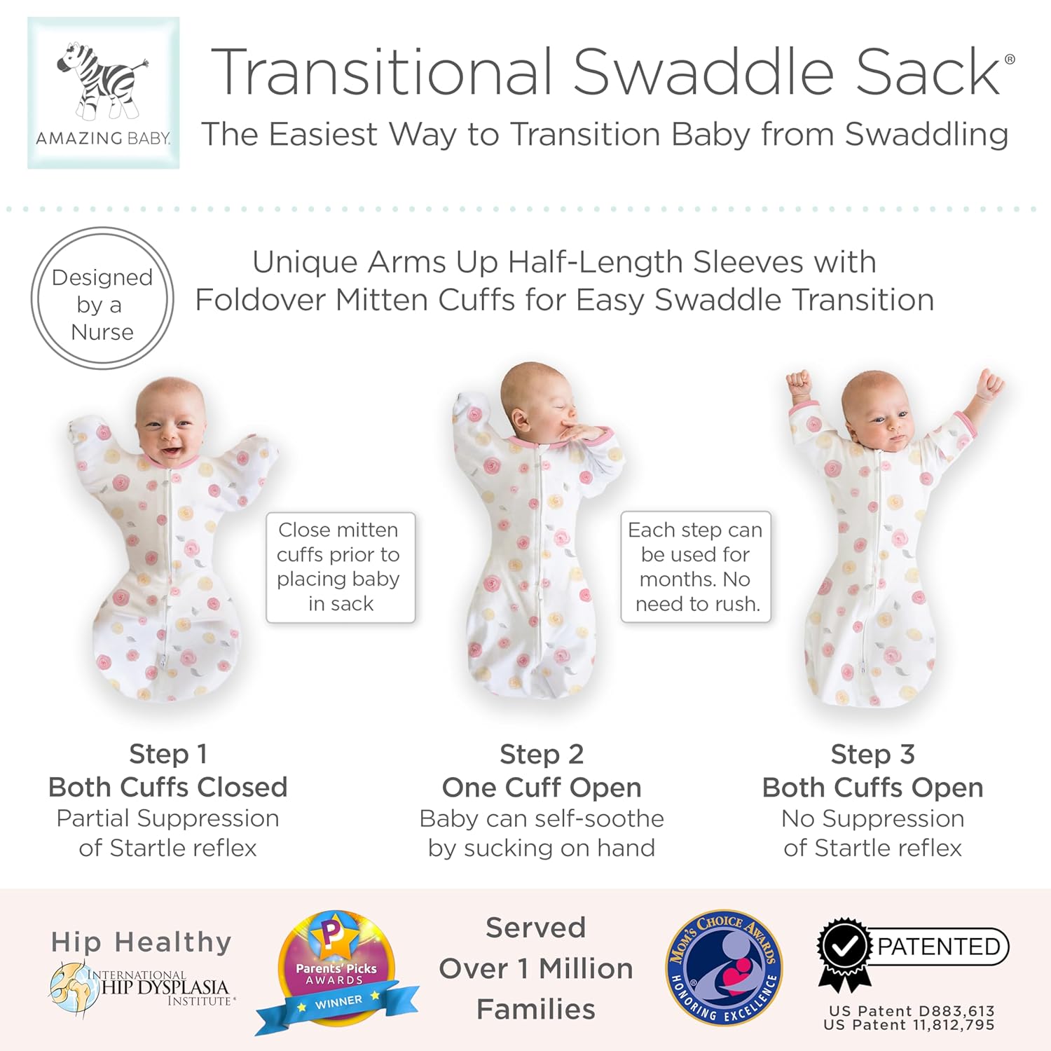 TRANSITIONAL SWADDLE SACK promotes BETTER SLEEP and SAFER SLEEP. Excellent for infants who wish to sleep with ARMS UP, infants beginning to or in a position to ROLL OVER, infants who wish to suck on palms to SELF-SOOTHE, and for infants who get out of a basic swaddle
