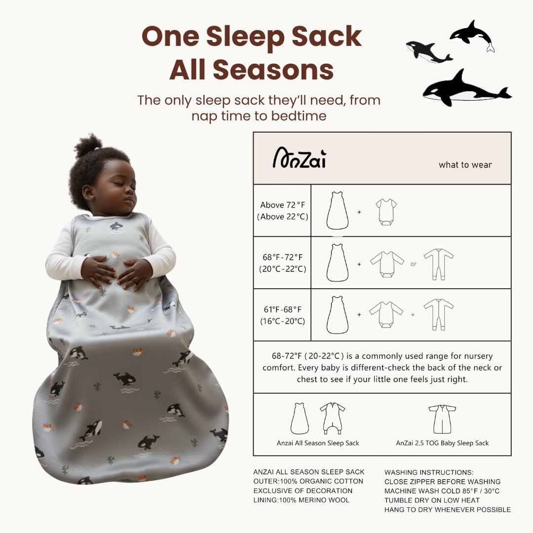 Give your child the reward of safer, extra restful sleep with the AnZai Merino Wool & Natural Cotton Child Sleep Sack. Designed as a premium different to high-priced wool sleep sacks, it combines Woolmark-certified Australian Merino wool with a GOTS-certified natural cotton shell to create the proper mix of softness, breathability, and sturdiness. The Merino wool lining is OEKO-TEX Normal 100 licensed, guaranteeing it’s utterly free from dangerous substances, chemical compounds, or synthetics. This makes it splendid for infants with delicate pores and skin, providing peace of thoughts to folks who need the most secure, most pure sleep resolution. Not like polyester-filled sleeping luggage, this merino wool child sleep sack naturally regulates physique temperature—maintaining your infant heat with out overheating and funky when it’s sizzling. Breathable and moisture-wicking, it’s really an all-season wearable blanket, making it the one sleep sack your child wants year-round. Designed to develop along with your youngster from 2–24 months, it options adjustable under-arm snaps for a safe but snug match at each stage. The premium YKK two-way zipper and shoulder snaps make nighttime diaper modifications straightforward, whereas closable seat-belt slots enable seamless transfers between crib, stroller, and bouncer. A roomy, hip-healthy design replaces free blankets for safer sleep. The AnZai Child Sleep Sack provides the identical luxurious consolation and security certifications as high-end wool sleep sacks, however at a family-friendly value. Excellent as a swaddle transition or long-term sleep resolution, it’s greater than only a sleeping bag—it’s peace of thoughts for folks and higher sleep for infants.