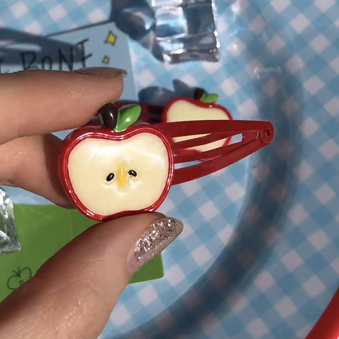 Child Ladies Apple Bow Hair Clips Children Ladies Fruit Bow Pin for College Bow