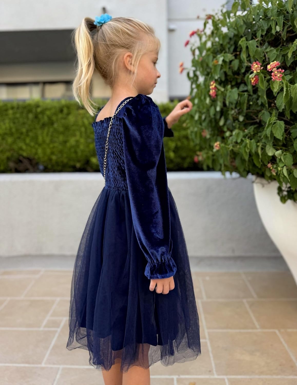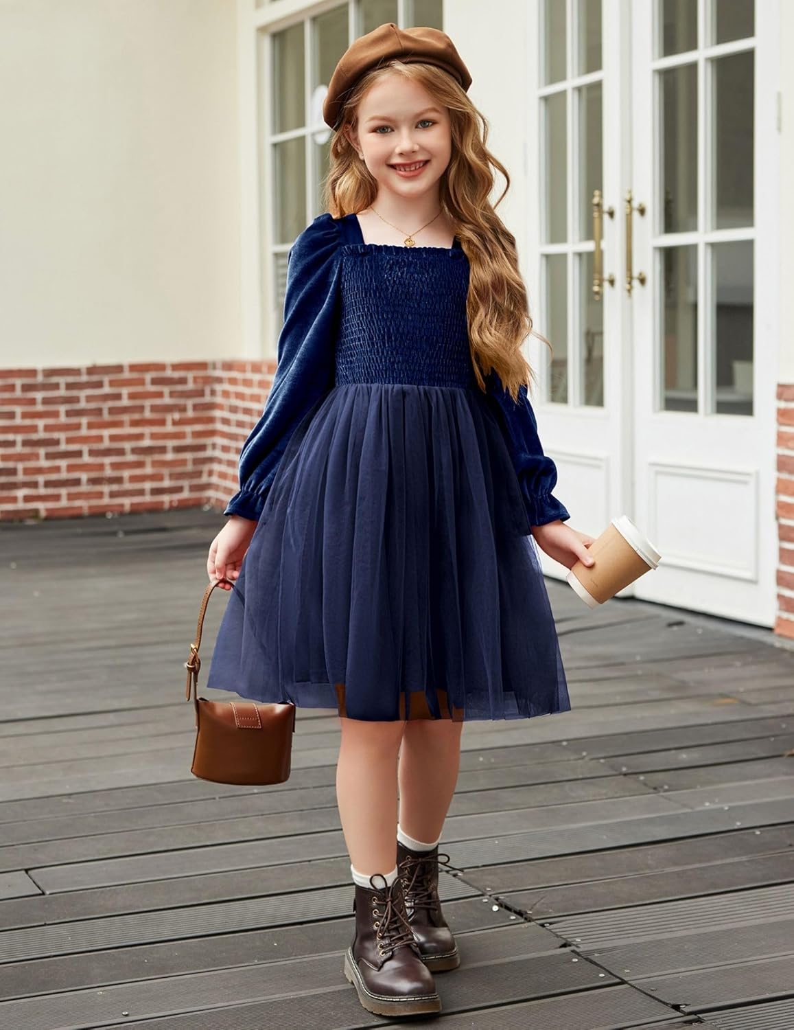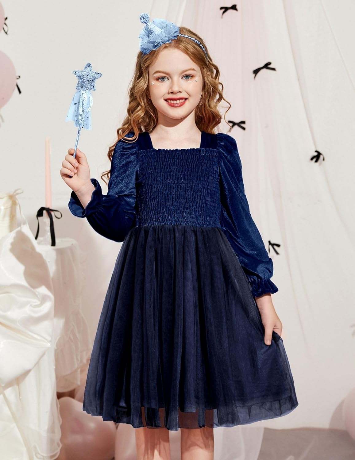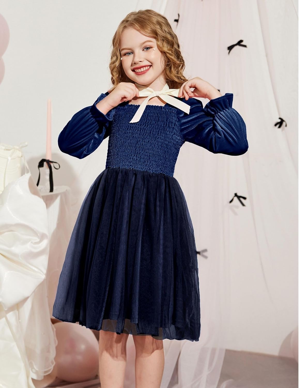 Arshiner Toddler Velvet Tulle Lengthy Sleeve Get together Formal Costume