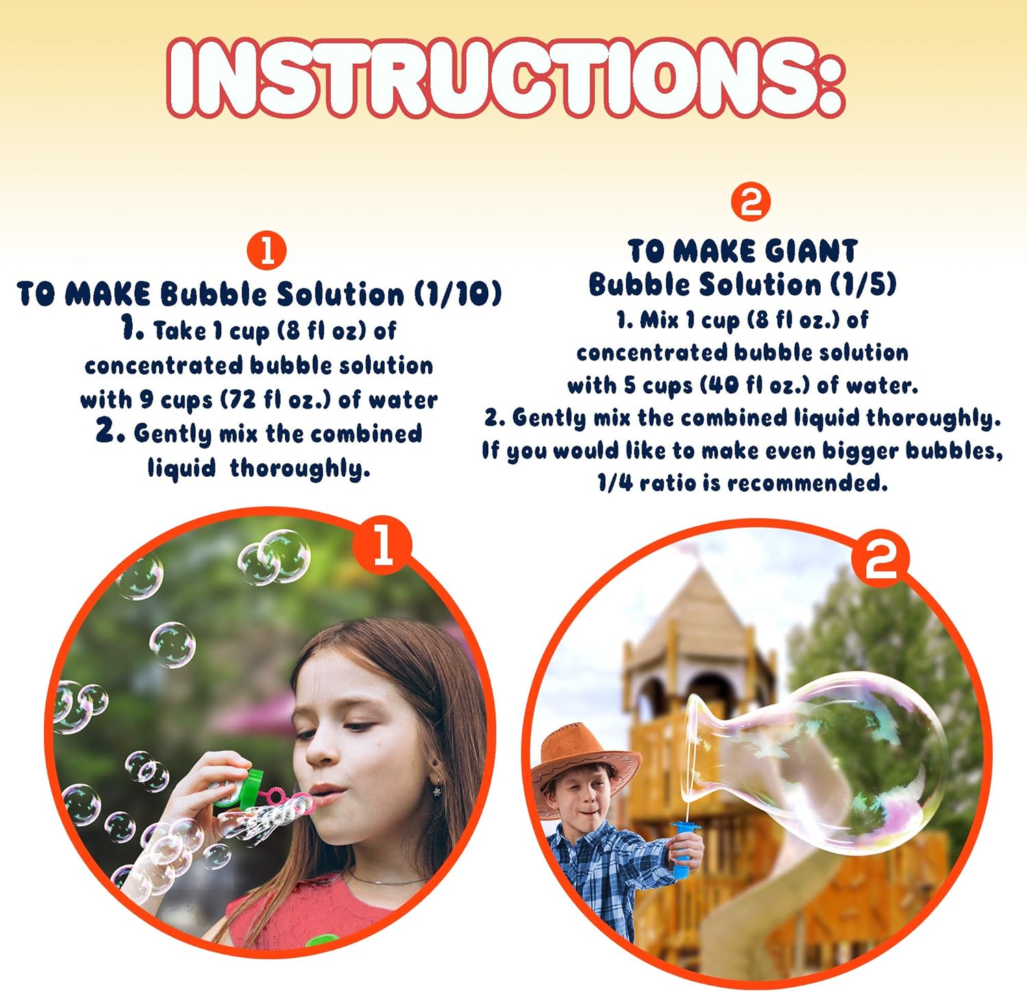 CREATE AMAZINGLY BIGGER AND BETTER BUBBLES: Take bubble enjoyable to the subsequent degree with this high-quality bubble focus answer! Directions are included for crafting each common and large bubbles for much more pleasure. Whether or not you’re making bubbles for bubble machines or wands, this answer ensures eye-catching bubbles that spark marvel and pleasure.