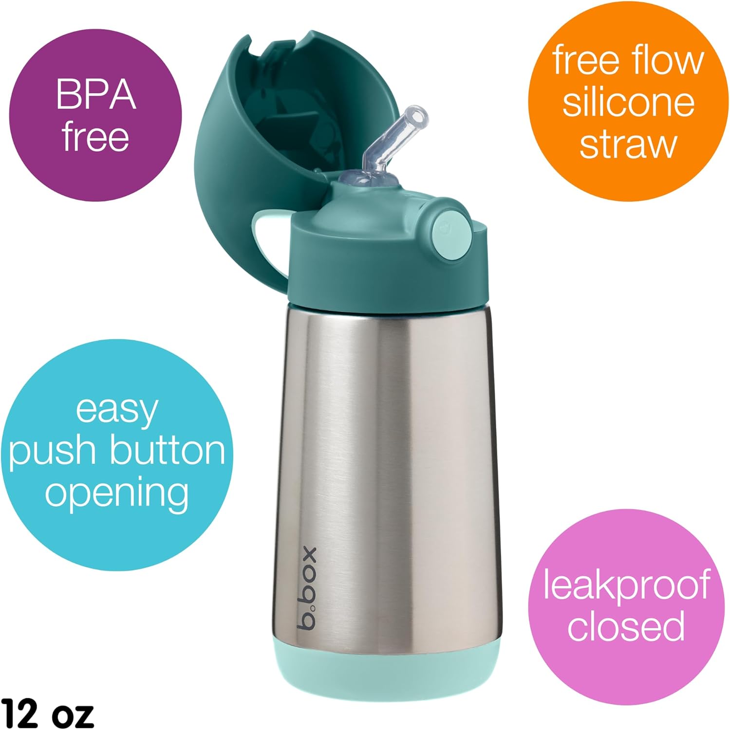 SIMPLE TO OPEN AND DRINK: Designed with simple push button opening for little palms and a steady circulation simple ingesting silicone straw. Nice for water, smoothies, juices and extra. BPA free and child secure.