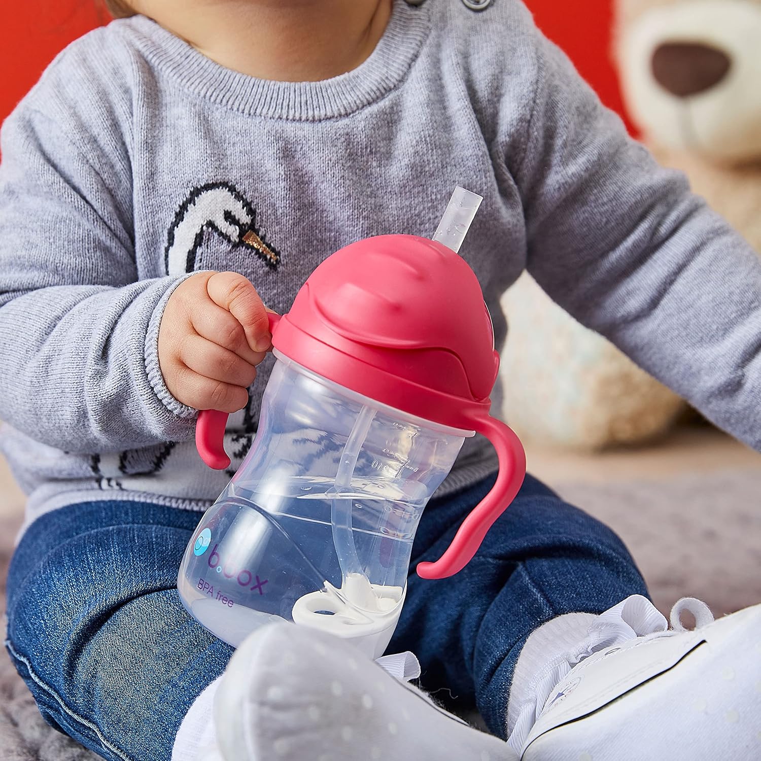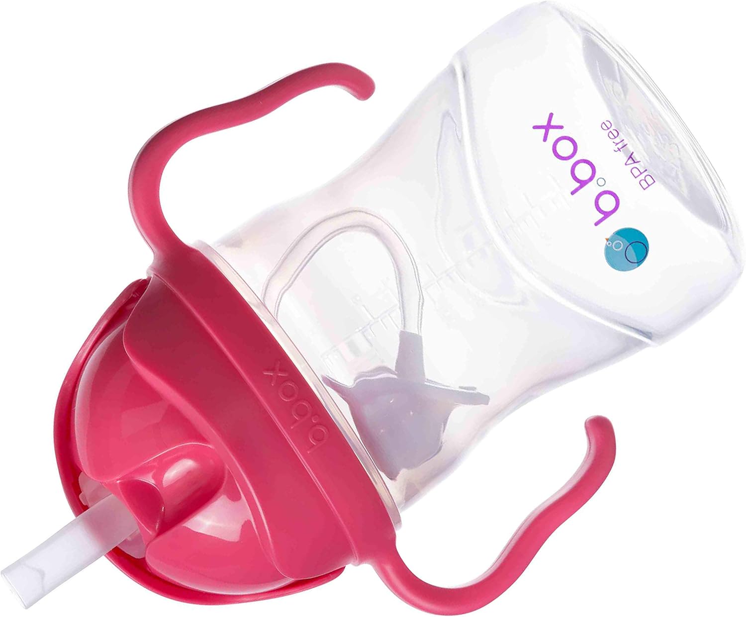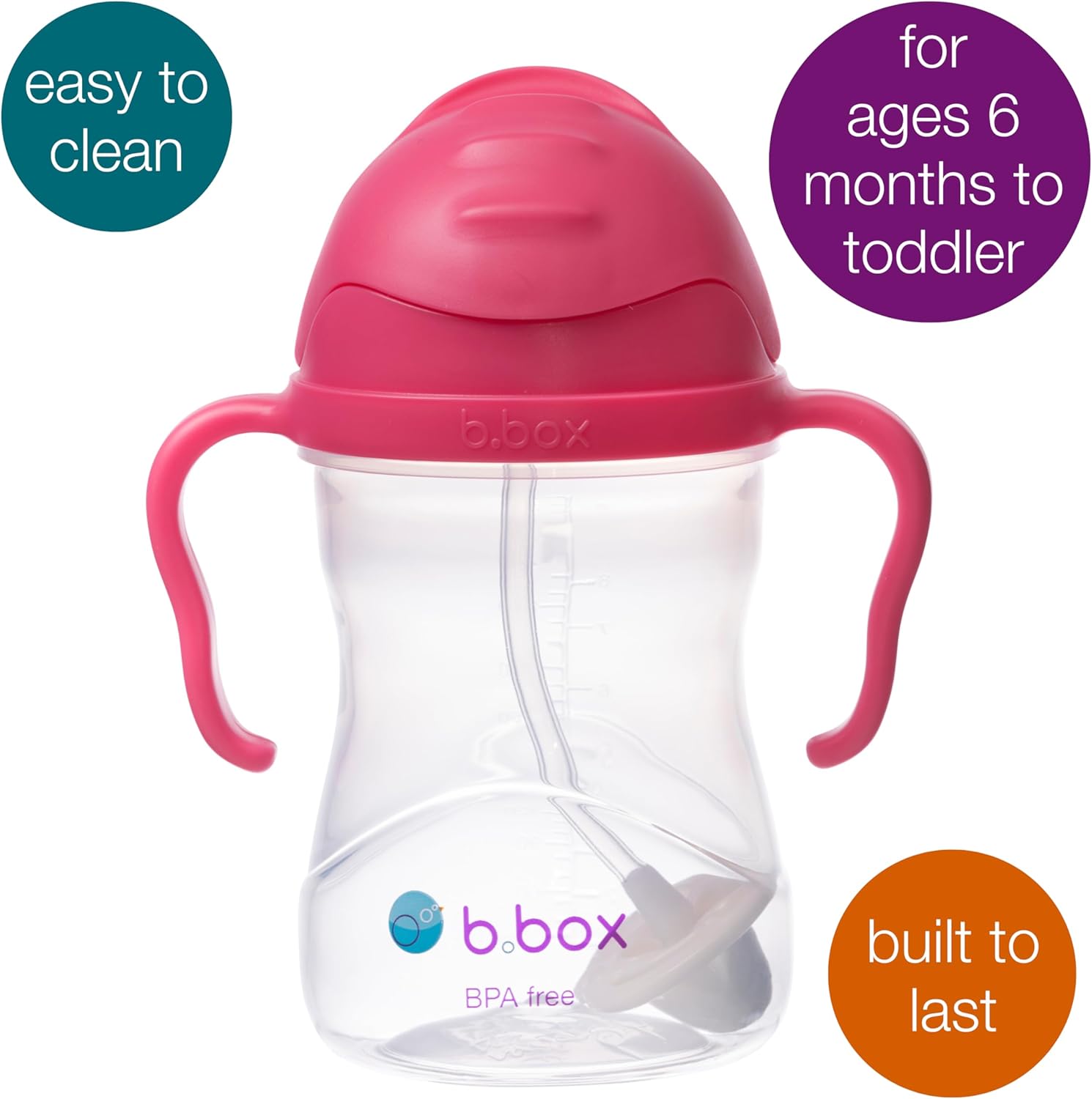b.box Sippy Cup with Weighted Straw. Leak & Spill Proof. Easy Grip. BPA Free, Dishwasher Safe. Sip from Any Angle. Ideal for Babies 6m+ to Toddlers. (Raspberry, 8oz)