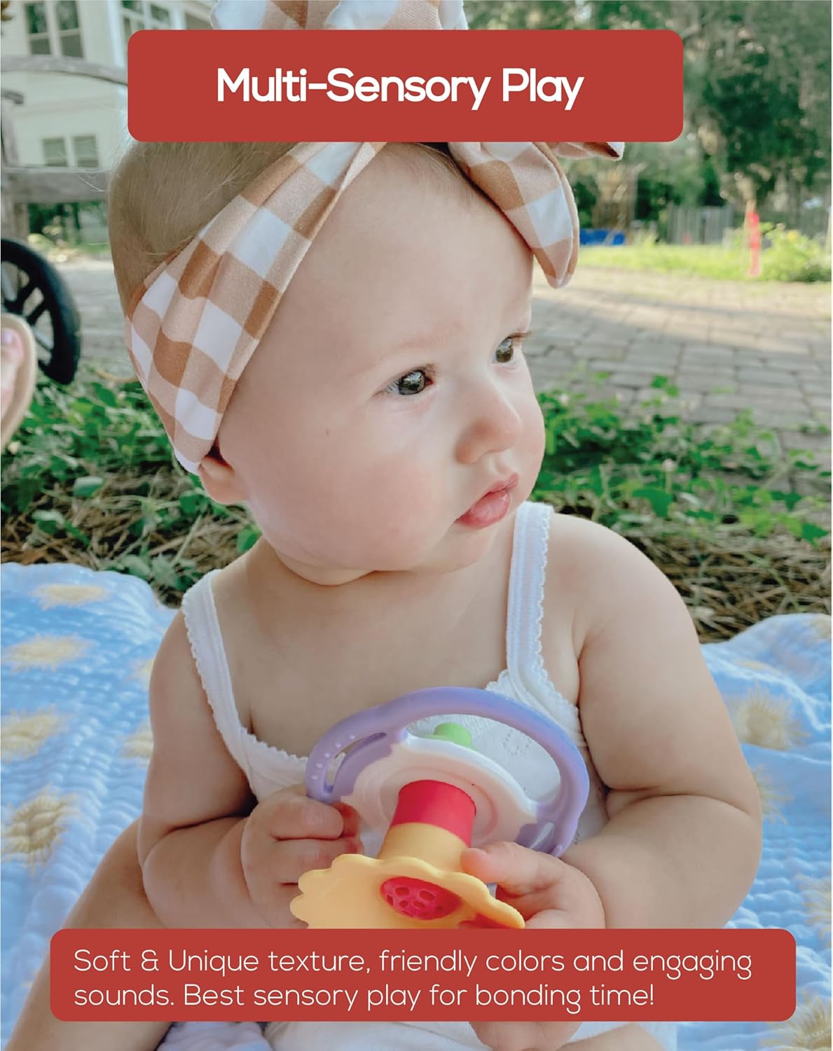 🎓INFANT DEVELOPMENT: The cheerful colours encourage tactile exploration, serving to infants to develop their sense of contact and really feel. The blowing and sucking motion of the Flower Whistle works to encourage the usage of oral muscle mass which might be vital for language improvement!