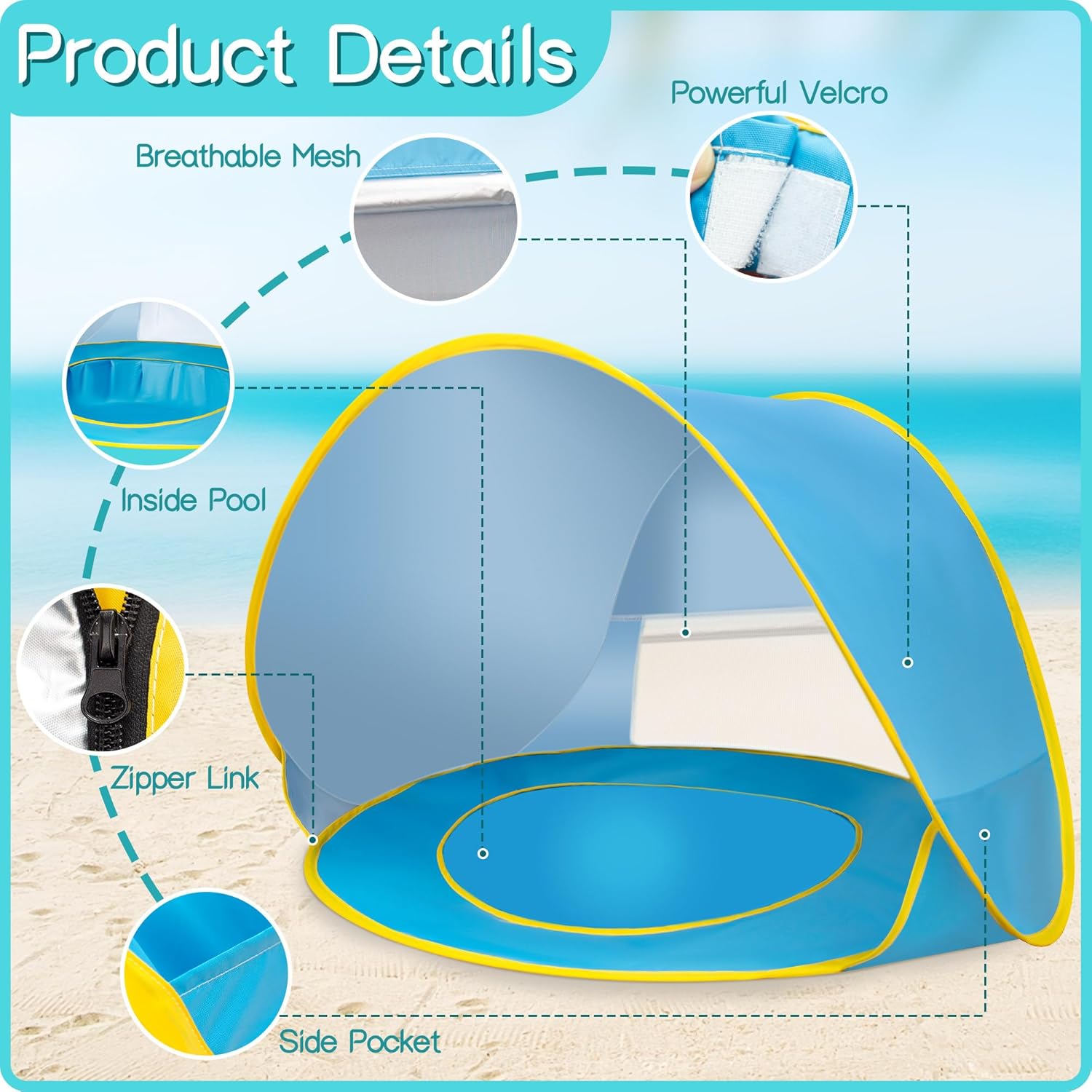 【Multifunctional Youngsters Seaside Tent】 Our youngsters’s seashore tent is designed for teenagers beneath 6 years previous, that includes a mini pool on the backside for toddlers to play in water. Preferrred for numerous settings together with outdoor, seashores, tenting, household journeys, it may also be arrange indoors or within the yard, shielding kids from direct daylight.
