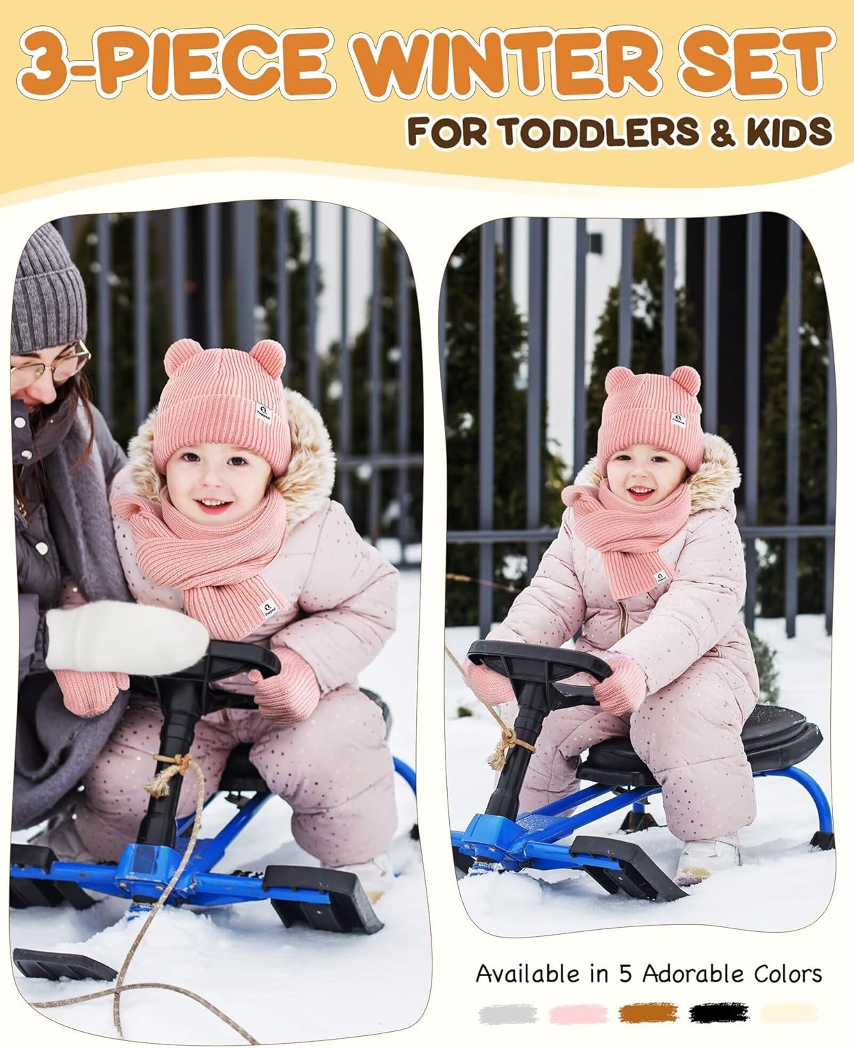 Baby Beanie Mittens Scarf Set,Toddler Infant Kids Winter Hat with Bear Ear Thermal Gloves Neck Warmer Set for Girls Boys