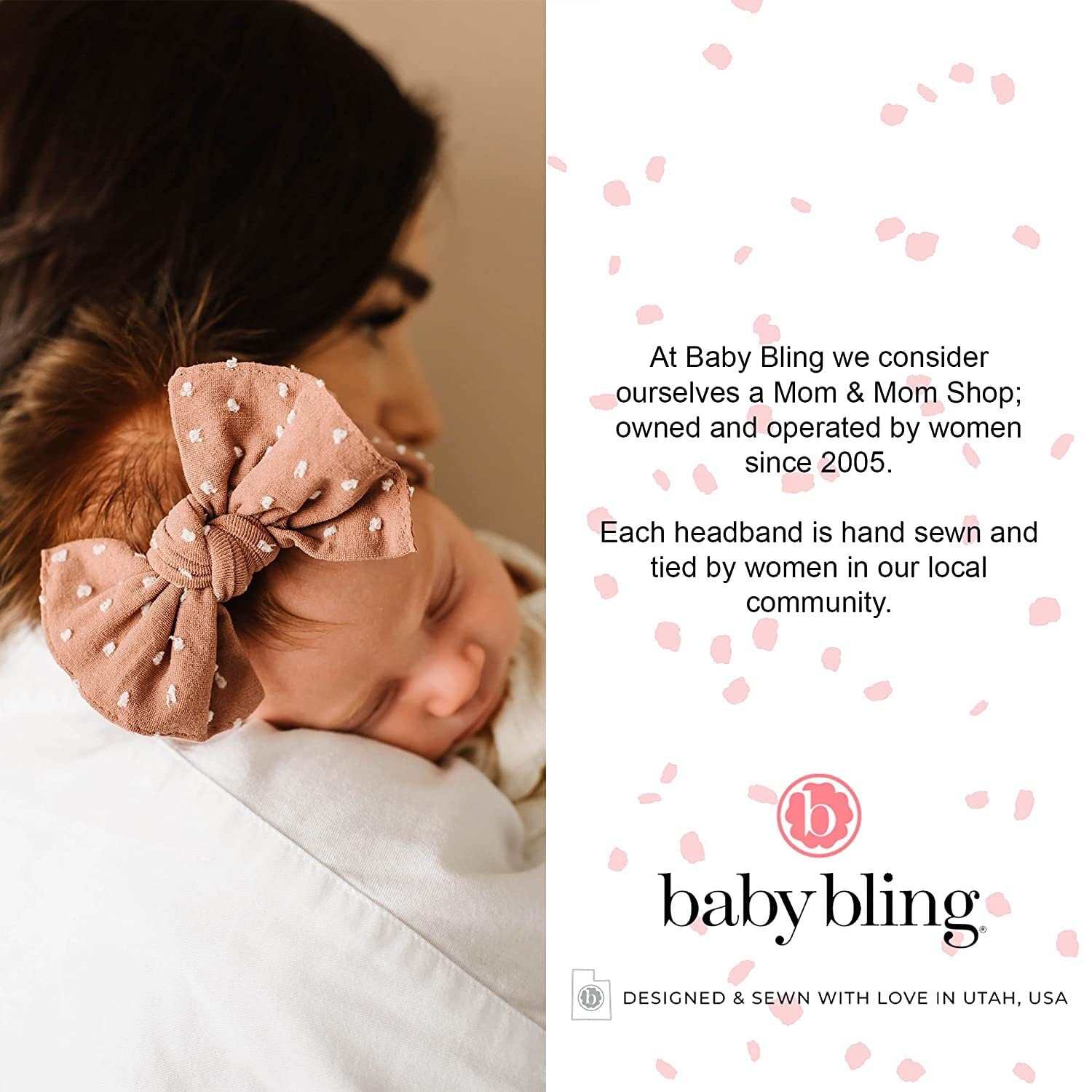 Our bows are hand sewn in Utah. Now we have essentially the most unimaginable group of girls that sew for us. It is a essential facet of the enterprise.