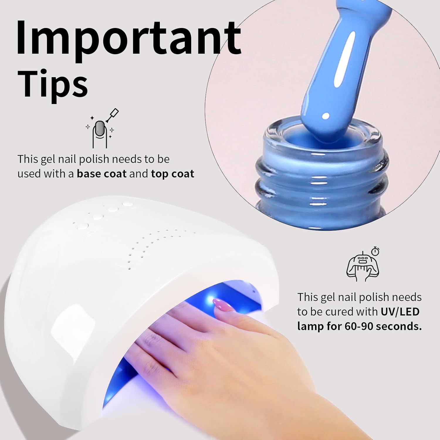 [UV Gel Polish]: This gel nail polish have to be cured below LED/UV mild for 1-2 minutes. Base and Prime coat required (not included within the package deal)