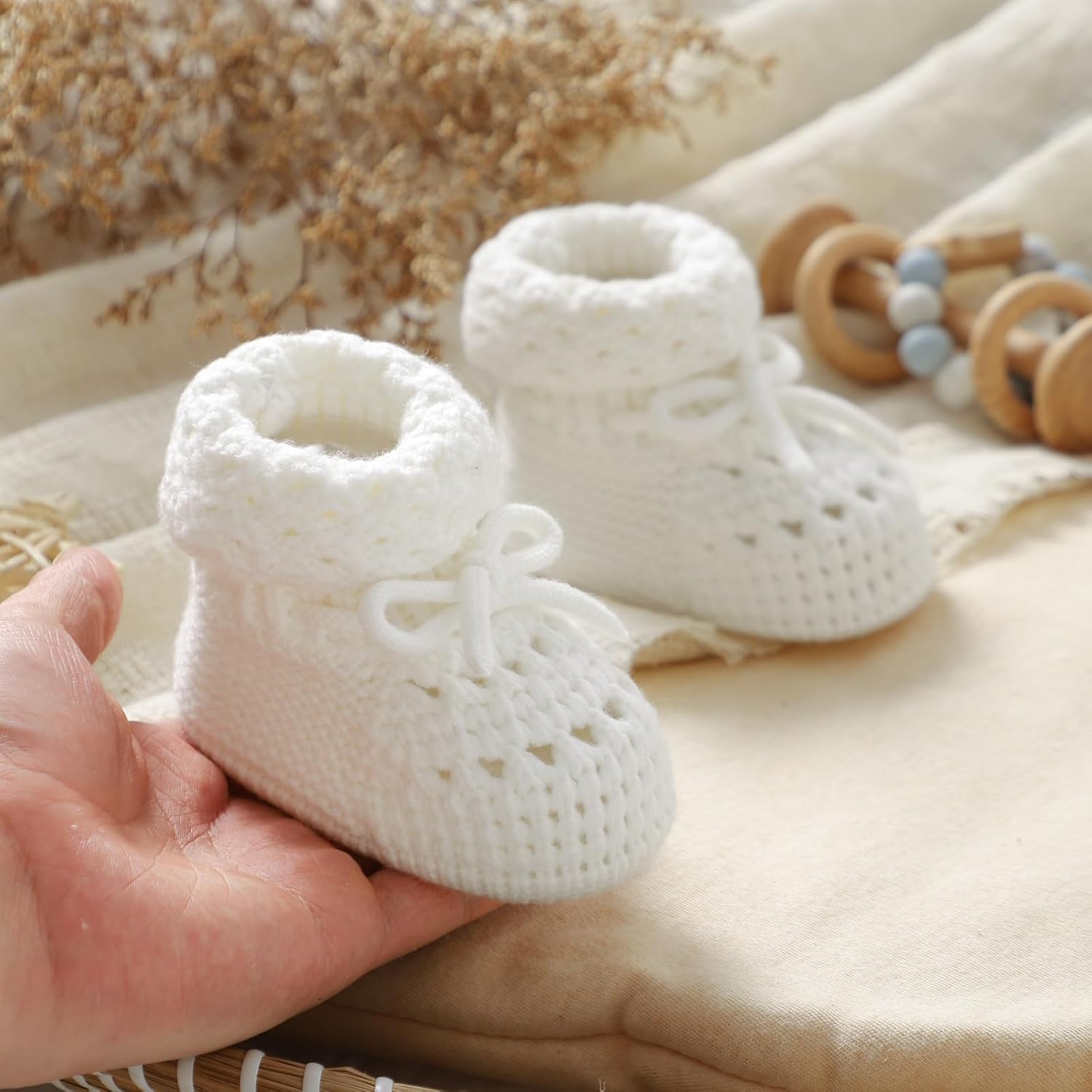 Baby Booties 100% Cotton Knitted Newborn First Cozy Warm Crib Shoes for Toddler Infant Boy Girl Babys Shower Gift