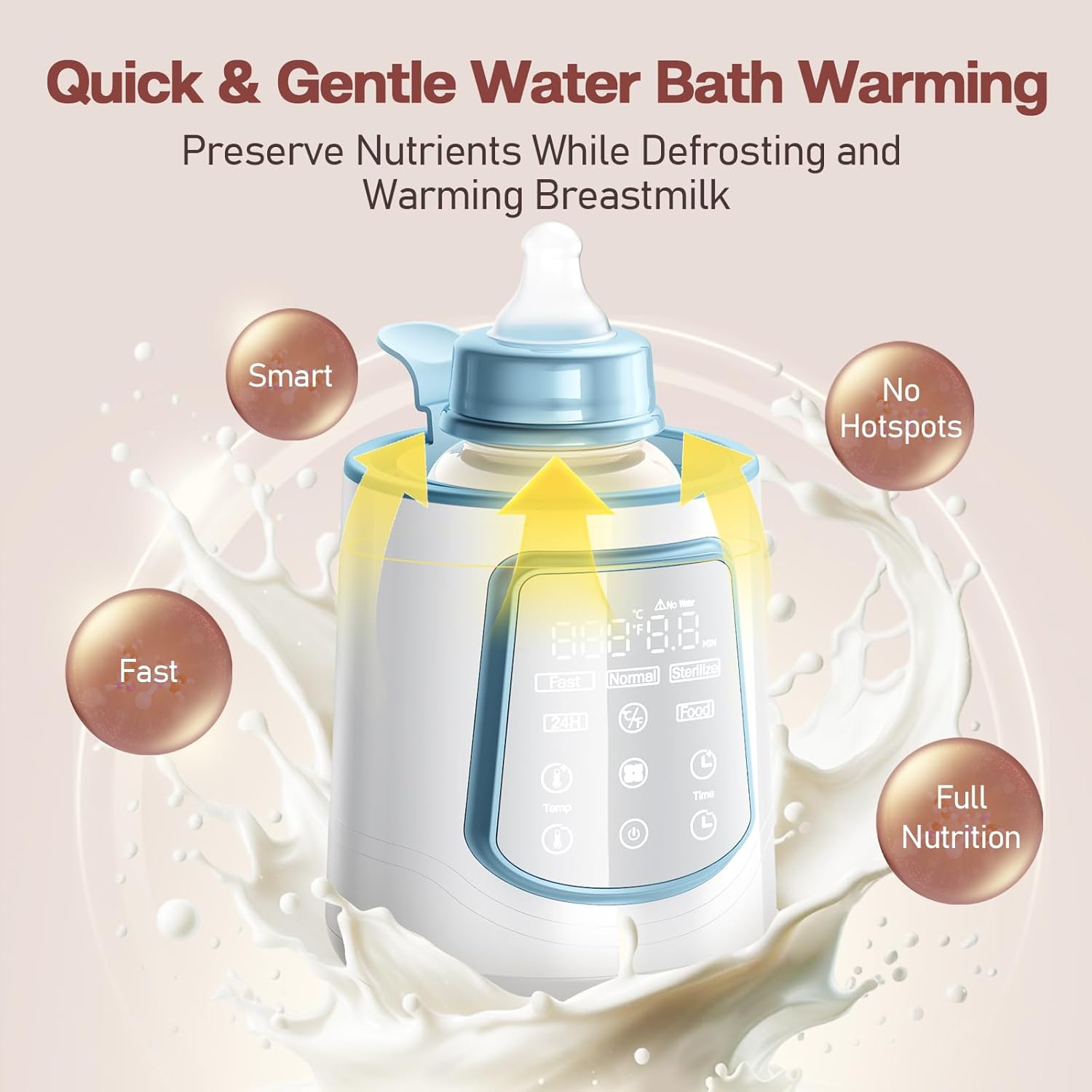 Quick Heating Expertise:Heats milk 30% quicker than conventional child bottle heaters,much less ready time.4oz/120ml glass bottle reaches 98.6°F/37°C in simply 2.2 minutes (Heating time varies based mostly on milk quantity,preliminary temp,bottle materials,and mode chosen)