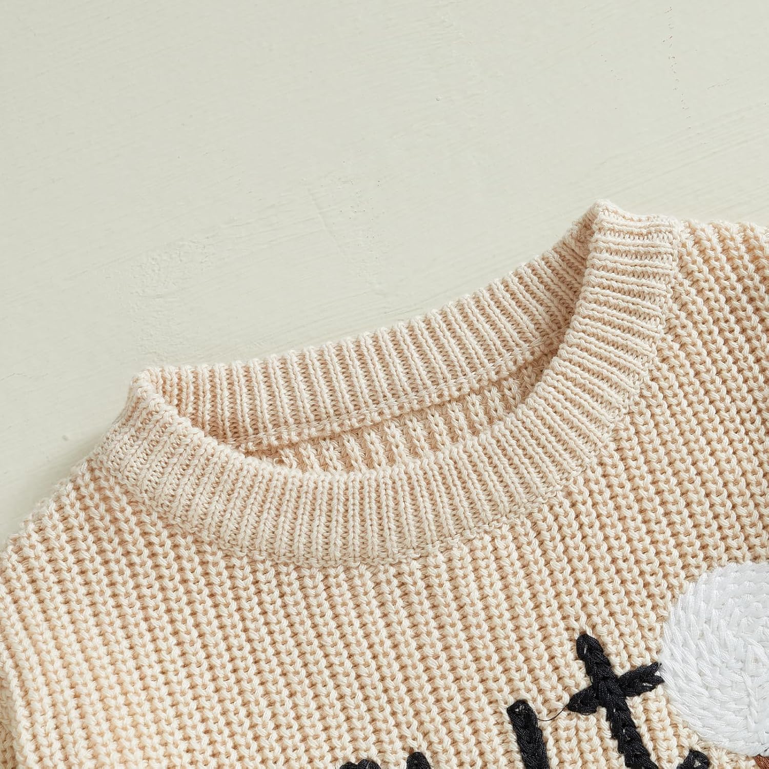 Child Knit Sweaters Lengthy Sleeve Spherical Neck Golf Embroidery Pullover Toddler Fall Tops