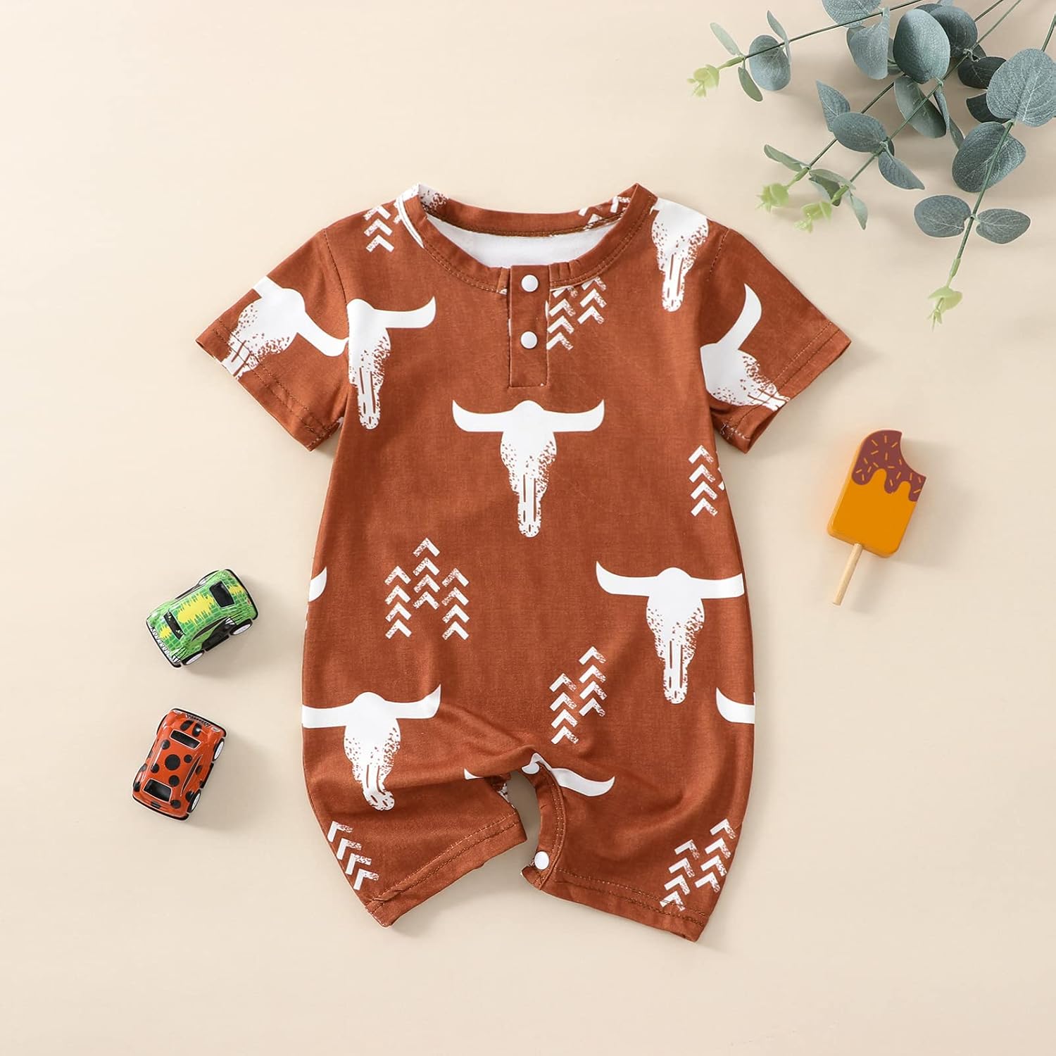 SHUING Western Child Women Boys Cow Print Footies Romper