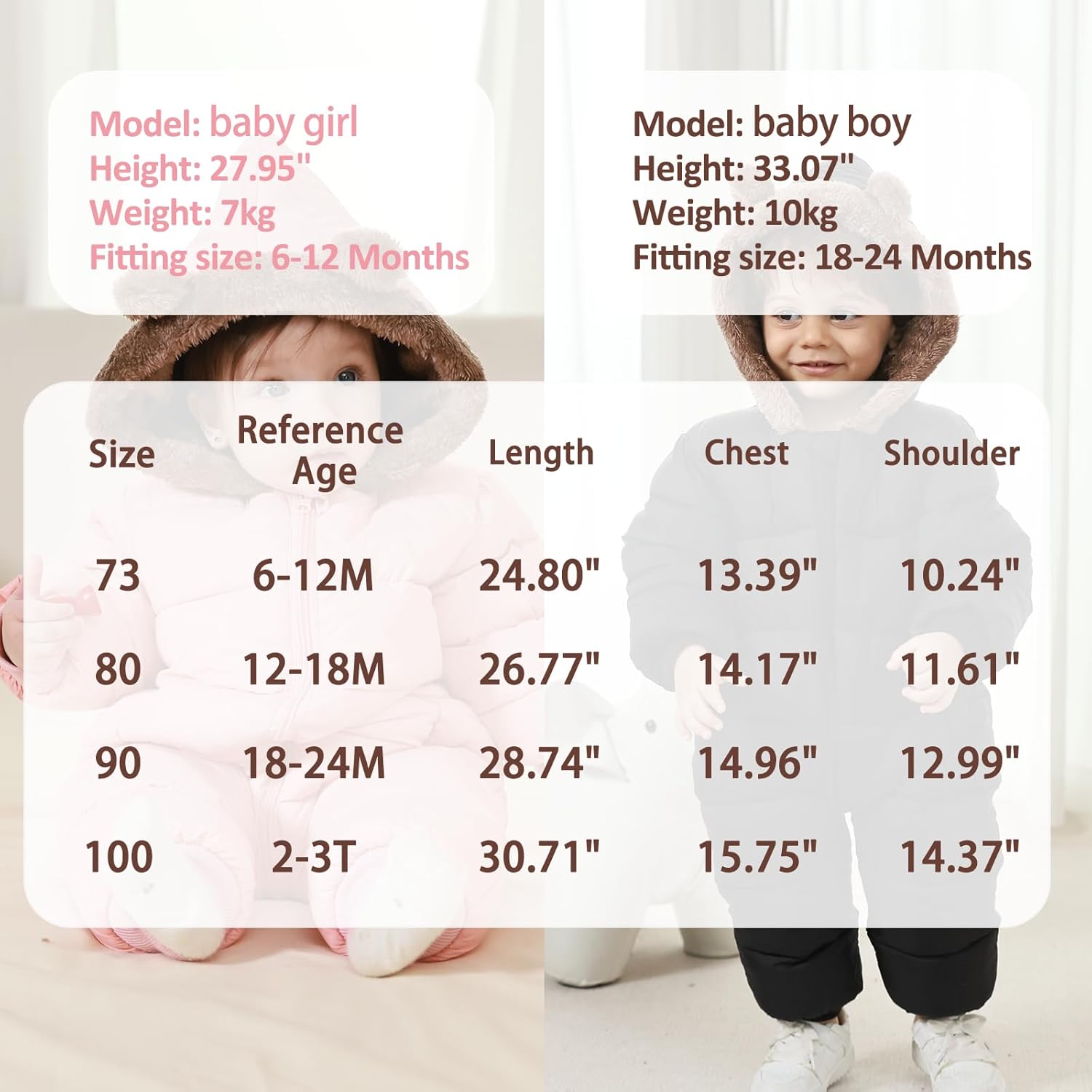 The toddler boys winter romper is accessible in three completely different colours—black, pink, and darkish blue.