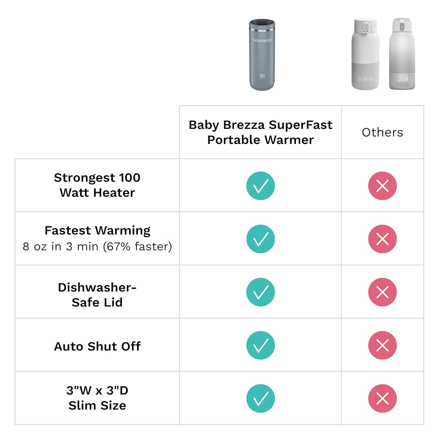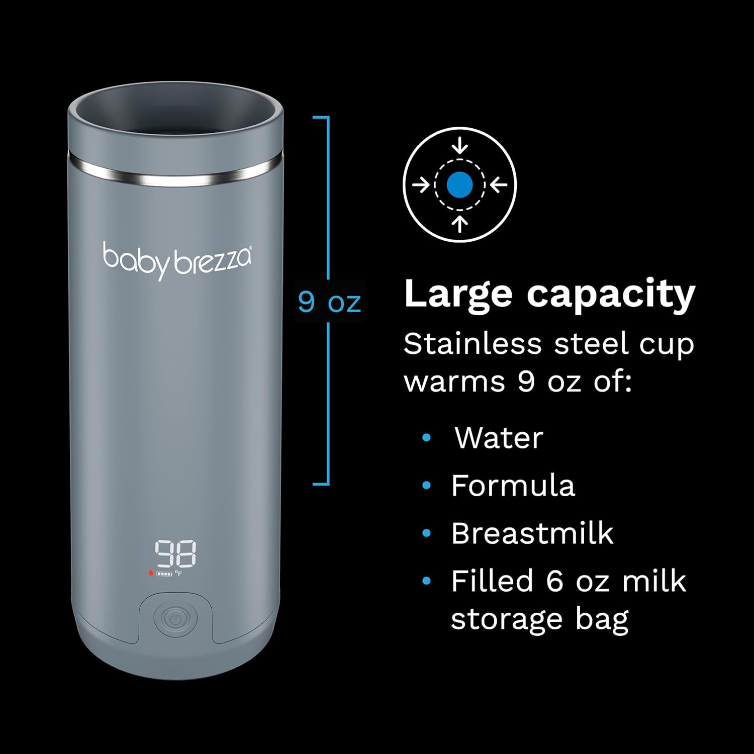 The Child Brezza SuperFast Transportable Bottle Hotter is the quickest, most superior solution to heat breastmilk, method, water or a stuffed milk storage bag on the go. Now out there in daring Gray colour. It is clinically confirmed to heat as much as 67% quicker than different transportable heaters, together with 8 oz in 3 minutes (from room temp to 98°F). Its Superior Sensor Expertise safely and evenly warms milk and method from high to backside, defending vitamins. No extra adapters, leaks or turning bottles the wrong way up! This rechargeable journey hotter warms as much as eight 6 oz bottles (from room temp to 98°F) on a full cost, and it simply matches in cupholders or bottle pockets in diaper baggage and backpacks, automobiles and strollers. The inside stainless-steel cup holds 9 oz of liquid or a stuffed 6 oz milk storage bag, and the dishwasher secure lid includes a 360° pour spout. Select from 4 warming temperatures: 80°F, 98°F, 99°F, or 103°F. Consists of USB-A charging cable; Energy adapter not included; 1 12 months restricted guarantee (not legitimate if shipped or used outdoors the US).