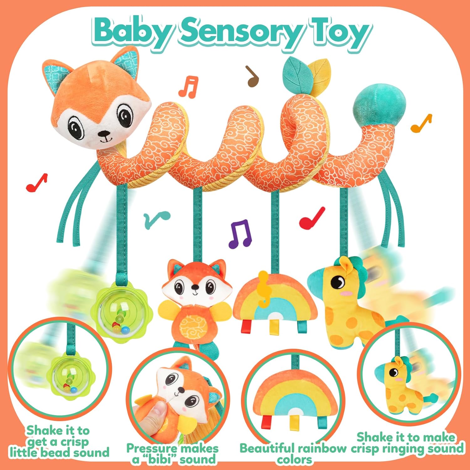 【Cute FOX Child Automobile Seat Toy】Vivid colours, blended textures, and shapes and cute orange fox design, the spiral toy can simply catch child’s eyes and appeal to child’s consideration. Encourage child’s visible growth and cultivating child’s colour notion, encourage child to the touch and discover.