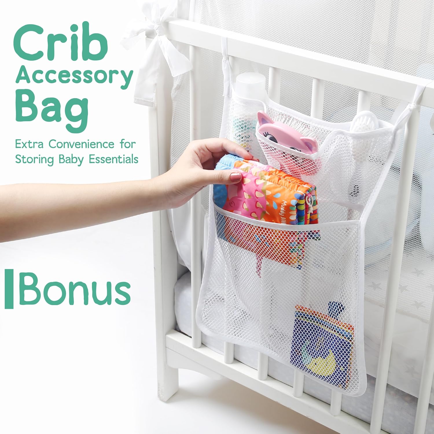 Our child crib tent’s facet storage bag provides organized, simply accessible storage for child necessities, saving area and enhancing security by maintaining objects inside attain but out of the infant’s quick neighborhood. It versatile pocket assist keep a neat and tidy nursery, offering dad and mom with a handy and environment friendly resolution