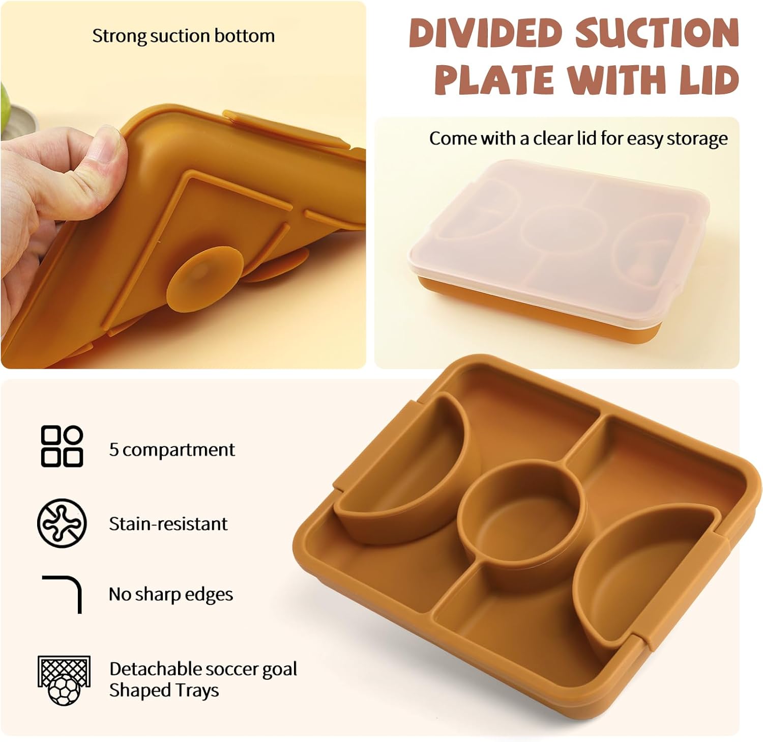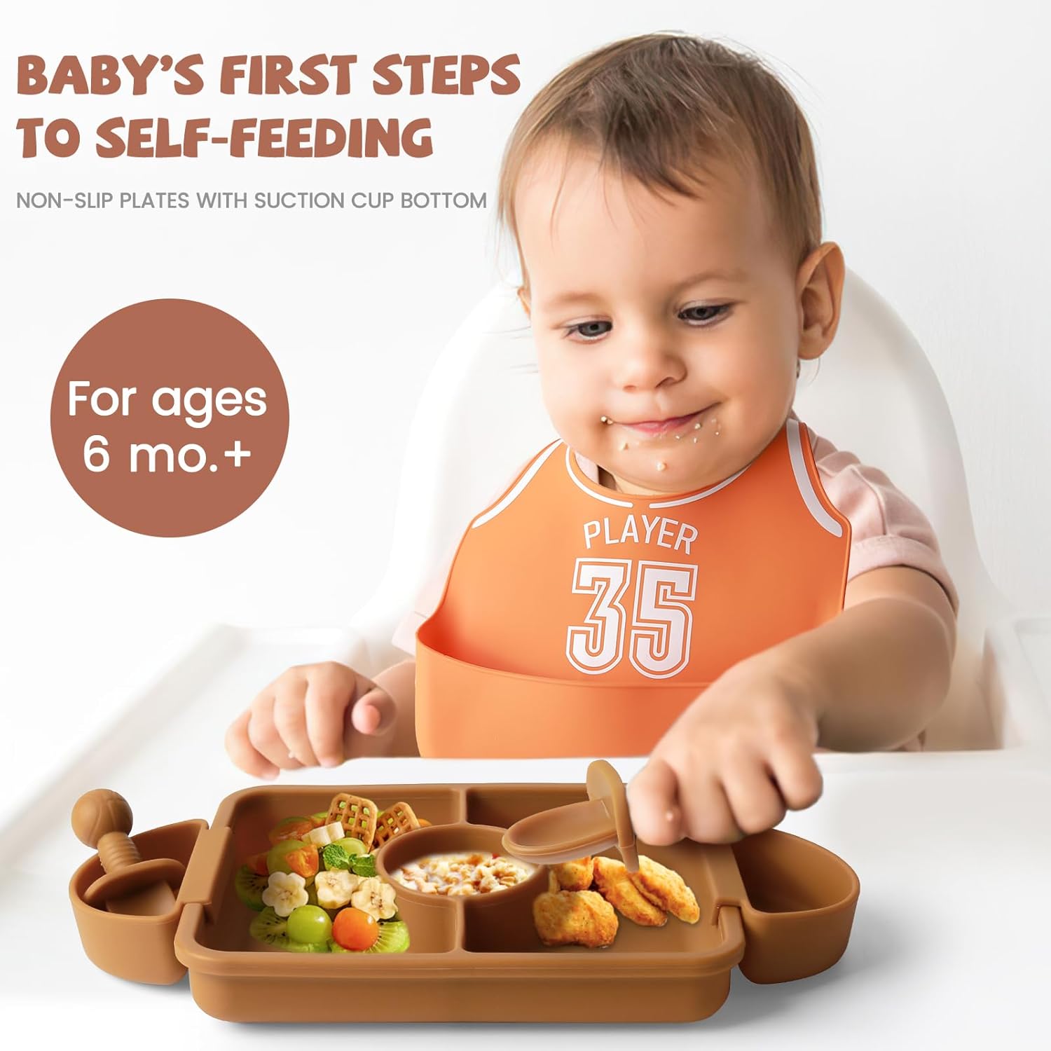 Mess-Proof Courtroom: Deep Compartments + Tremendous Suction: The divided basketball court docket plate retains meals separated – use the “Centre Circle” zone for dips and facet compartments for veggies! 360° suction base withstands toddler tugs, whereas the jersey bib’s huge crumb catcher prevents spills on garments.