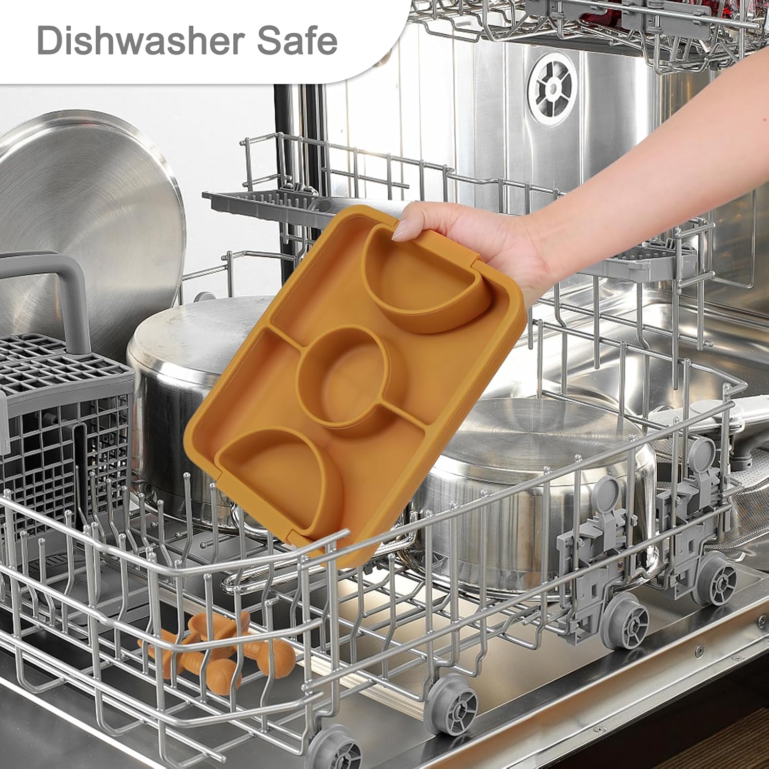 SUPER STABLE: Suction base + grippy silicone = dish stays put throughout messy meals.