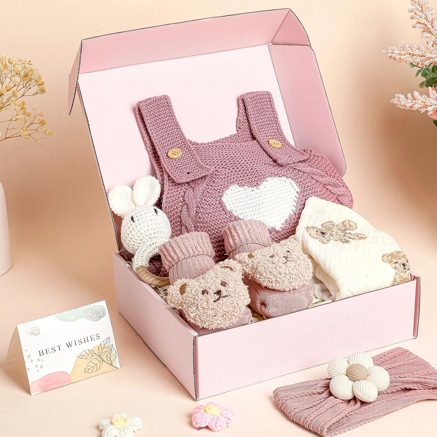 Charming Child Lady Items: Our pleasant new child present set incorporates a vary of cozy and cute objects, such because the comfortable knitted sweater, bear blanket, and pink flower headband. Each bit is designed with love and care, making it an important present for a child woman. The crochet bunny rattle provides an additional contact of allure and leisure for the infant, whereas the comfortable socks maintain tiny ft heat.