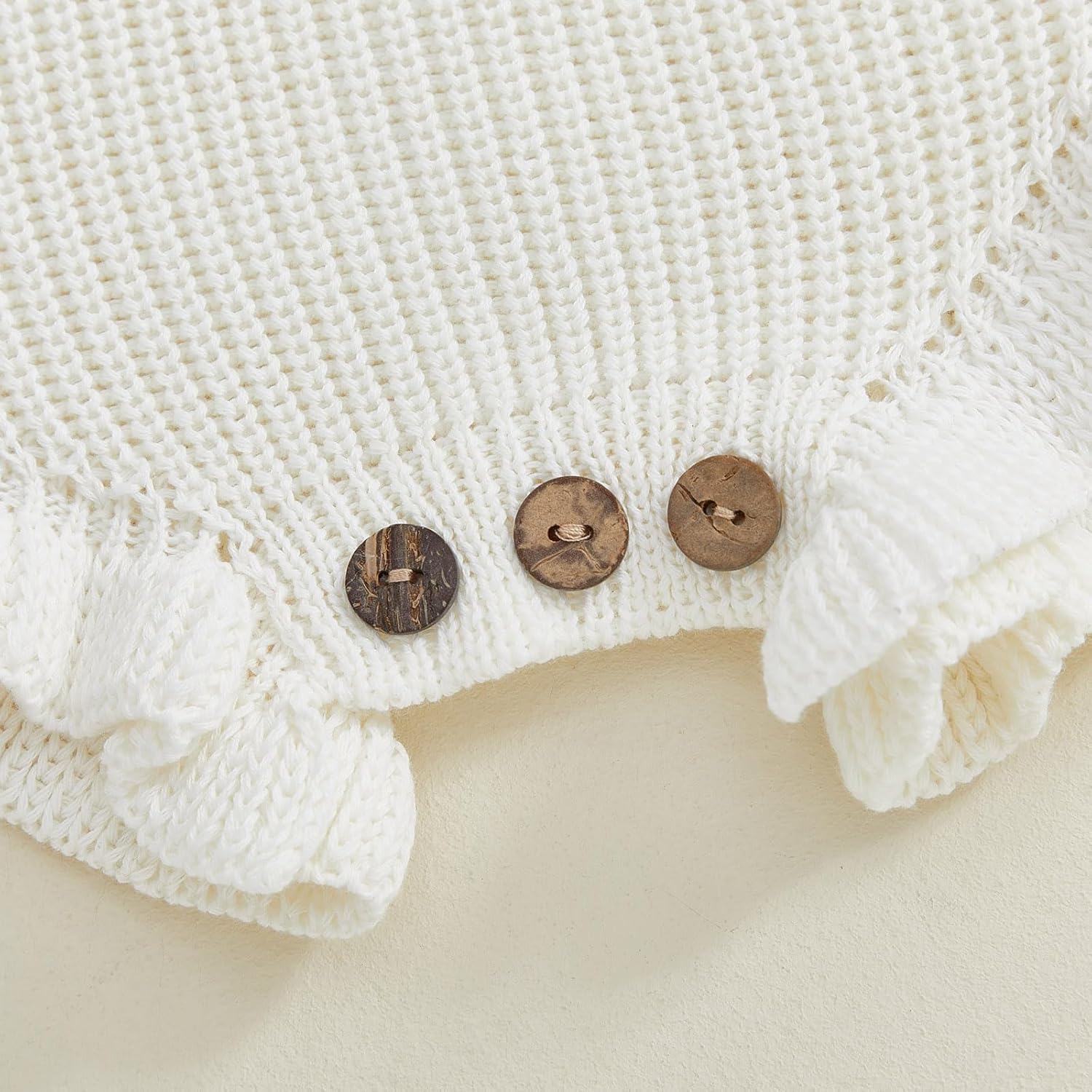 Child Lady Fall Garments New child Knit Sweater Romper Ruffle Stable Coloration Crochet Onesie One Piece Winter Outfit