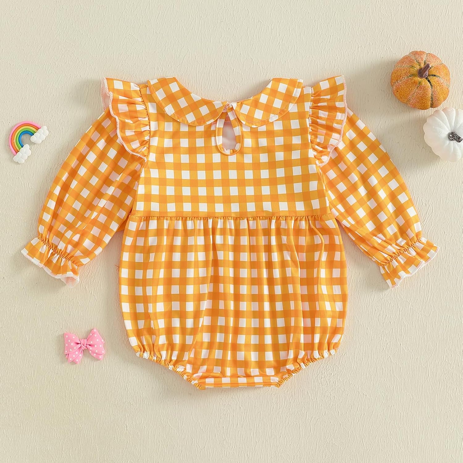 Be the first to review “Baby Girl Halloween Outfit Newborn Long Sleeve Bubble Romper Fall Winter Pumpkin Print Smocked Bodysuit”