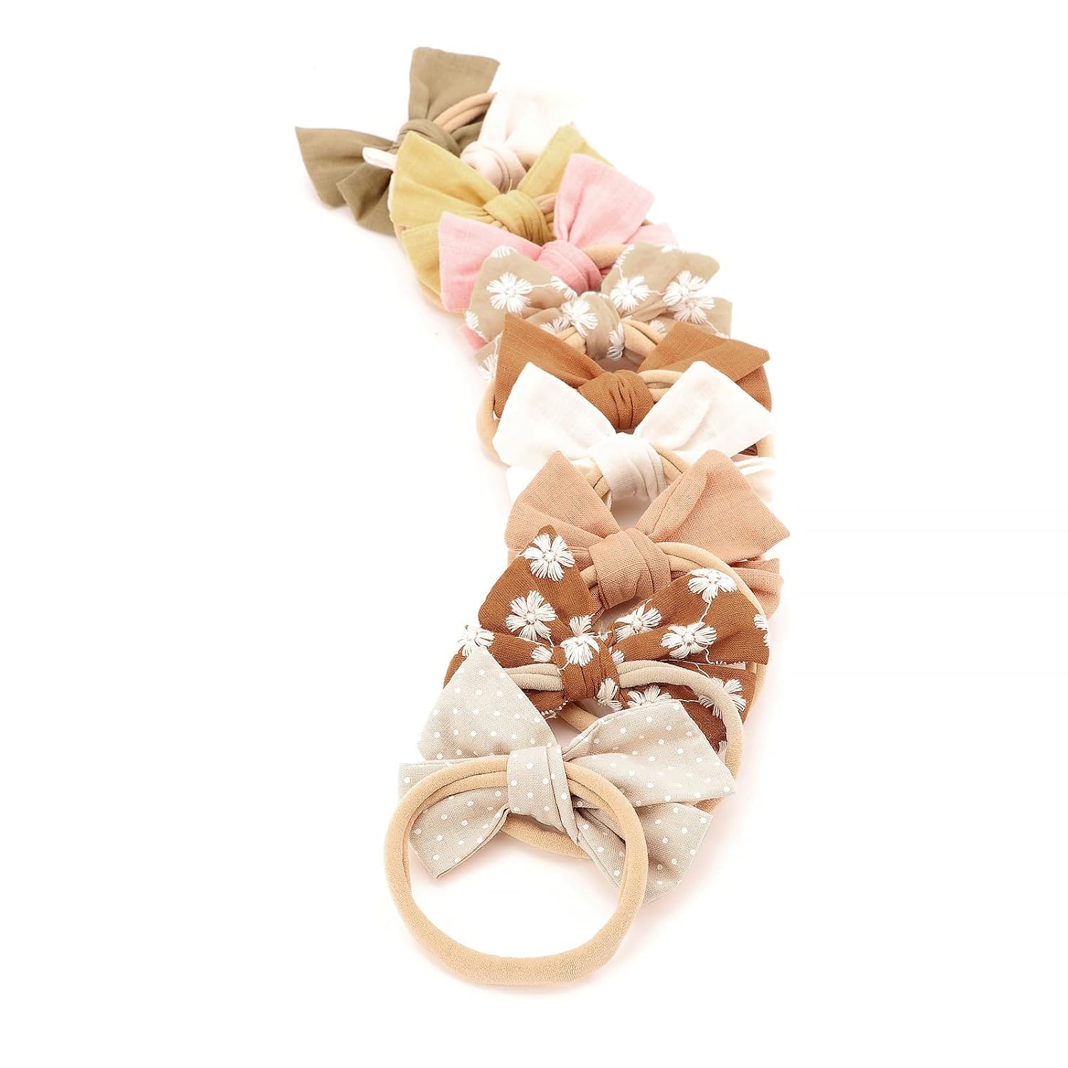 AQOKKA 10 Pack Child Lady Nylon Headbands and Bows