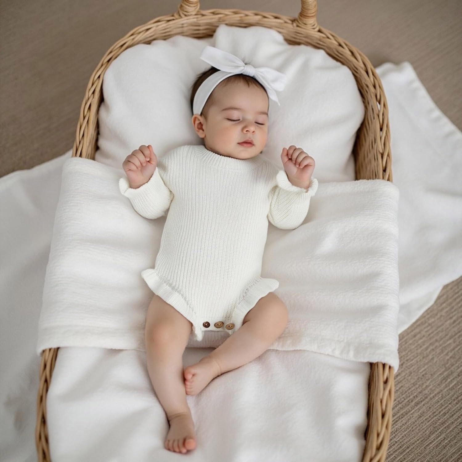 Baby Girl Knit Ruffle Romper Oversized Long Sleeve Crewneck Sweater Bodysuit Warm Knitted Winter Clothes