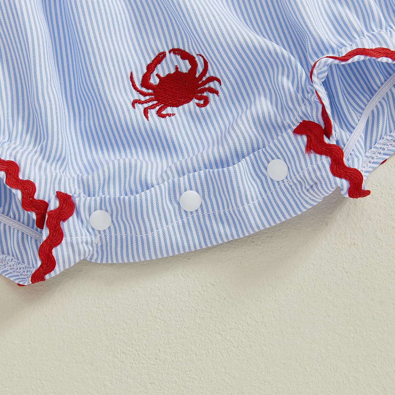 Child Woman Summer season Garments Toddler Crab Outfit Striped Embroidery Crew Neck Fly Sleeve Romper Toddler Bodysuit