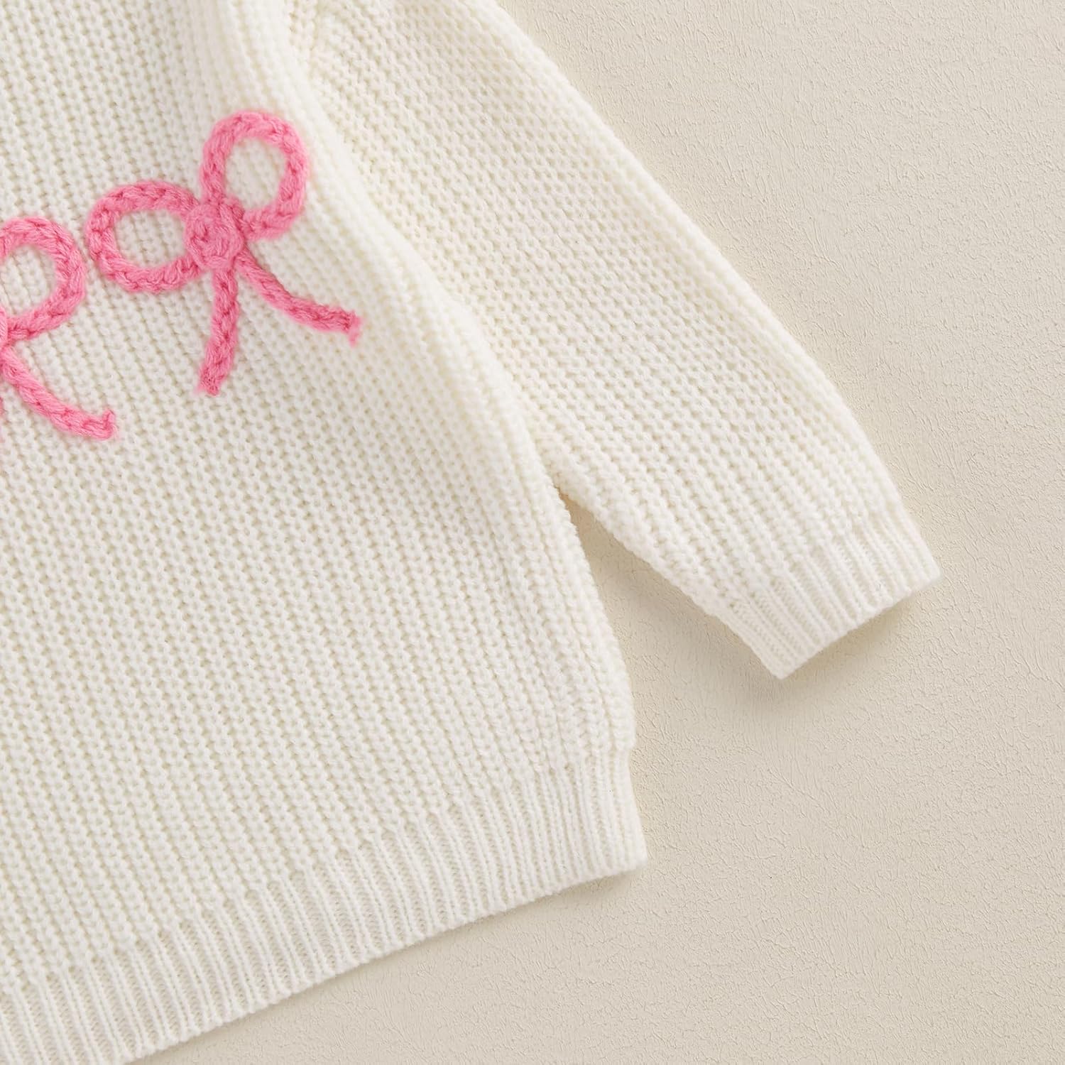 Child Women Knit Romper, Lengthy Sleeve Crew Neck Bowknot Bodysuit Sweater for Informal Day by day