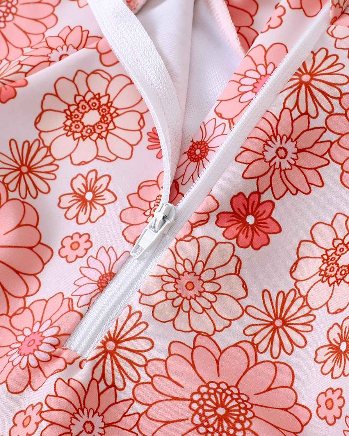 Baby Girl Swimsuit Long Sleeve One-Piece Swimwear with Hat Rash Guard Ruffle Floral Zipper Beach Infant Bathing Suit