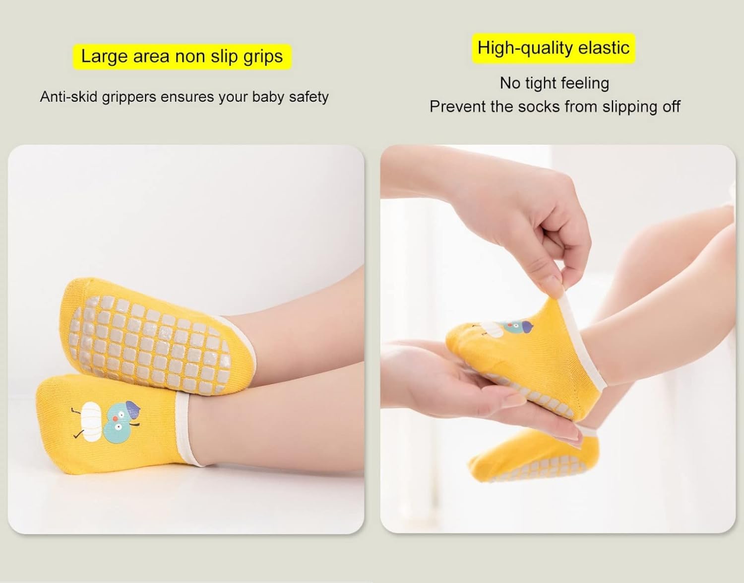 Anti skid toddler socks designed with sturdy grips on the backside covers the entire foot from heel to toe, effectively present extra safety for the energetic little girls and boys