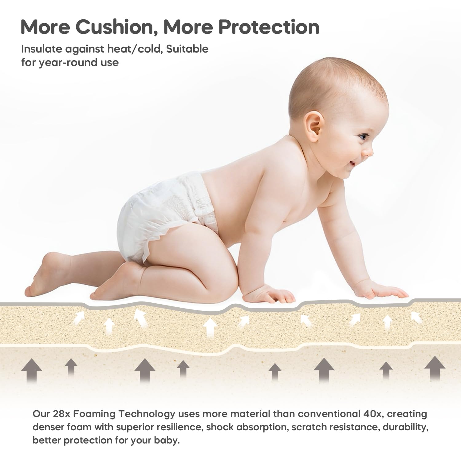 Spacious Design for Play & Nap: Measuring 50 x 50 inches, this child play mat presents ample area on your baby to discover, play, and nap. Its 0.4-inch thickness offers wonderful cushioning to guard delicate wrists, elbows, and knees from arduous flooring.