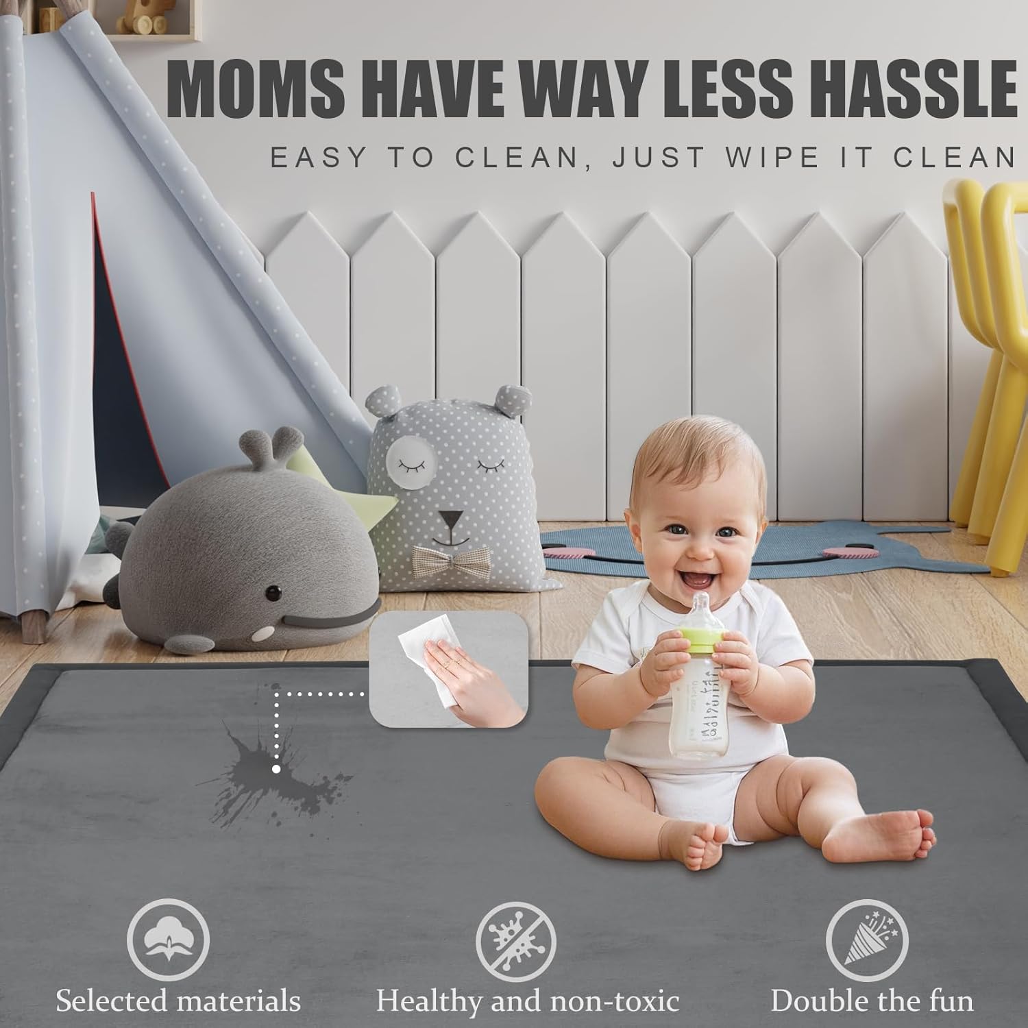 EASY TO CLEAN & SAVE WORRY AND EFFORT: Moms’ parenting life is busy, how can cleansing issues make it extra chaotic? The floor is designed to be simple to scrub, making it good for busy dad and mom. Dealing with numerous stains left by infants when enjoying, simply wipe it gently with a moist fabric, and our child play mats for ground will be shortly restored to cleanliness, simply serving to you clear up cleansing troubles and making a hygienic play surroundings in your child
