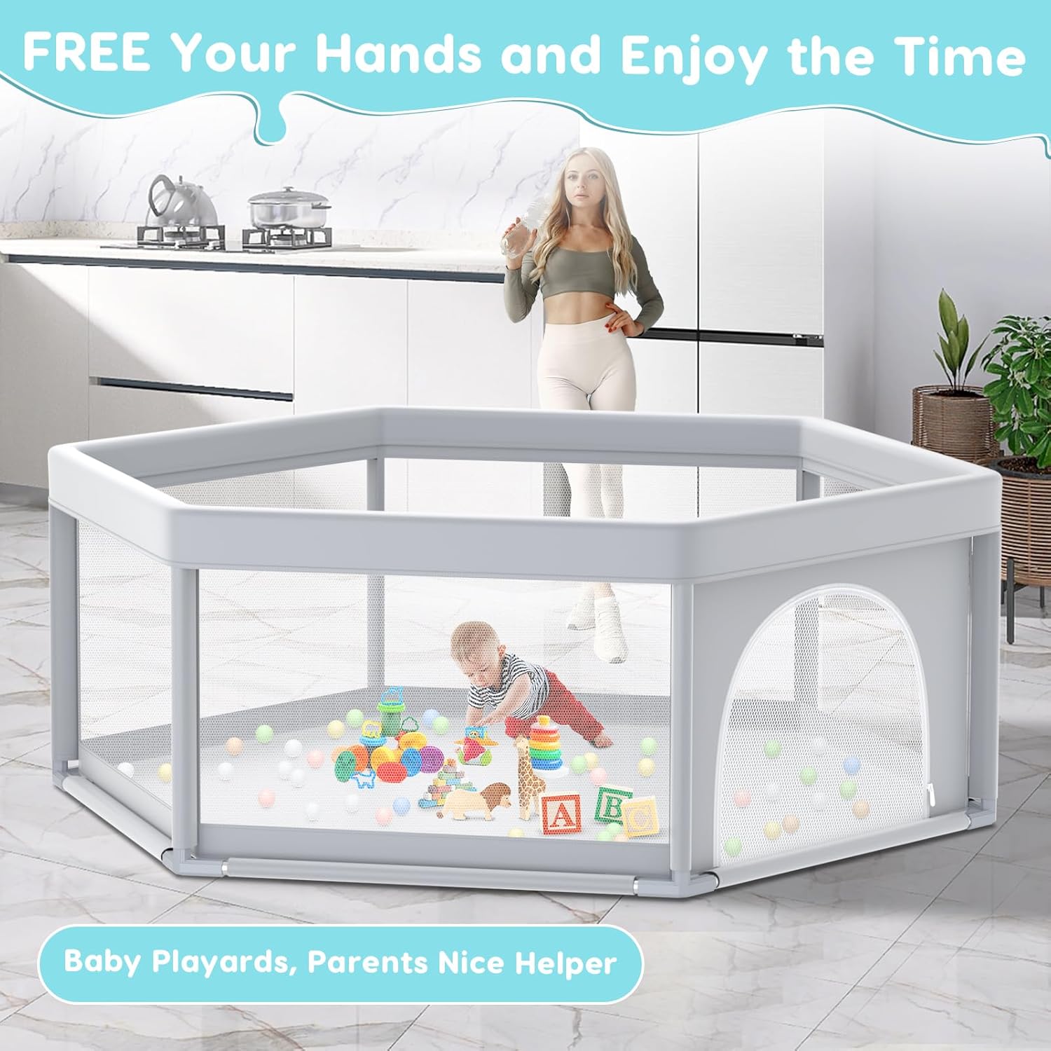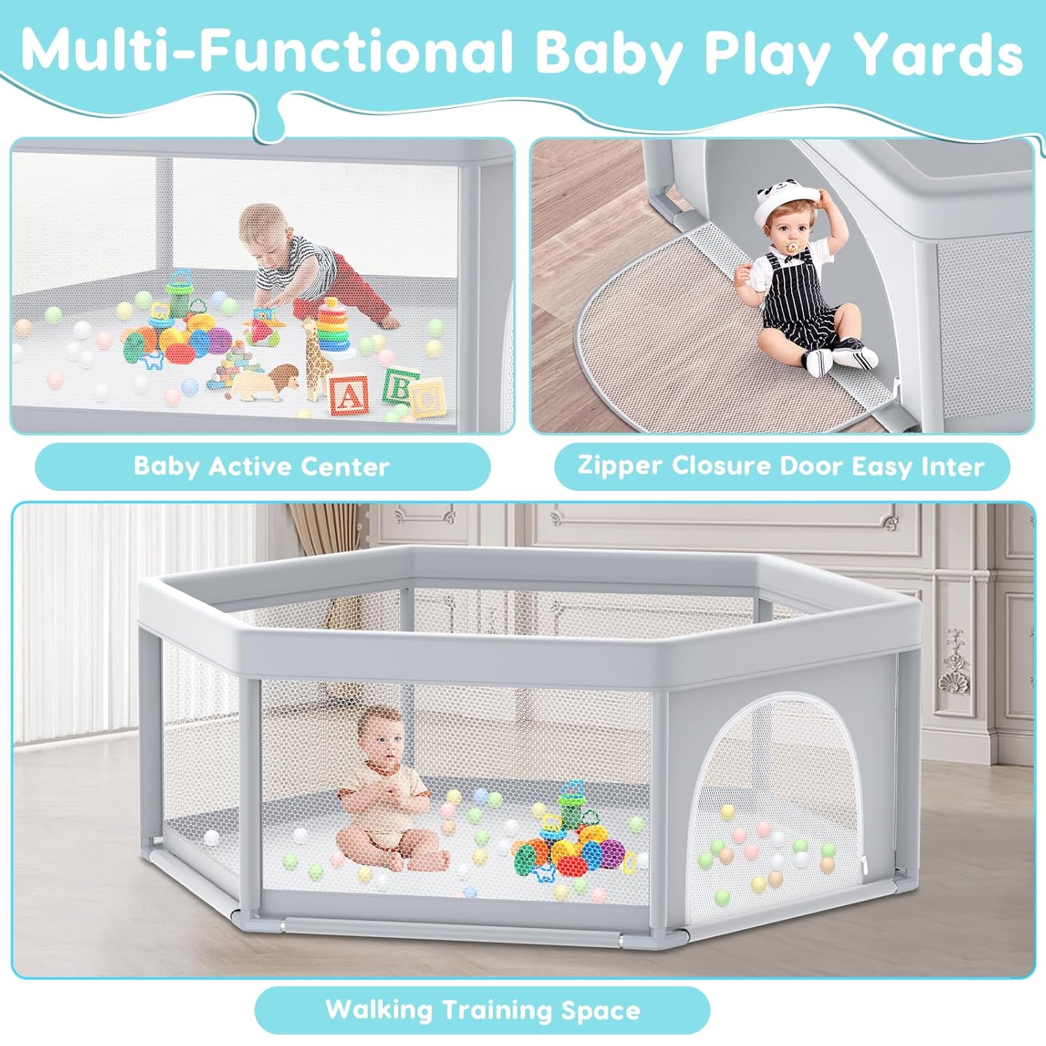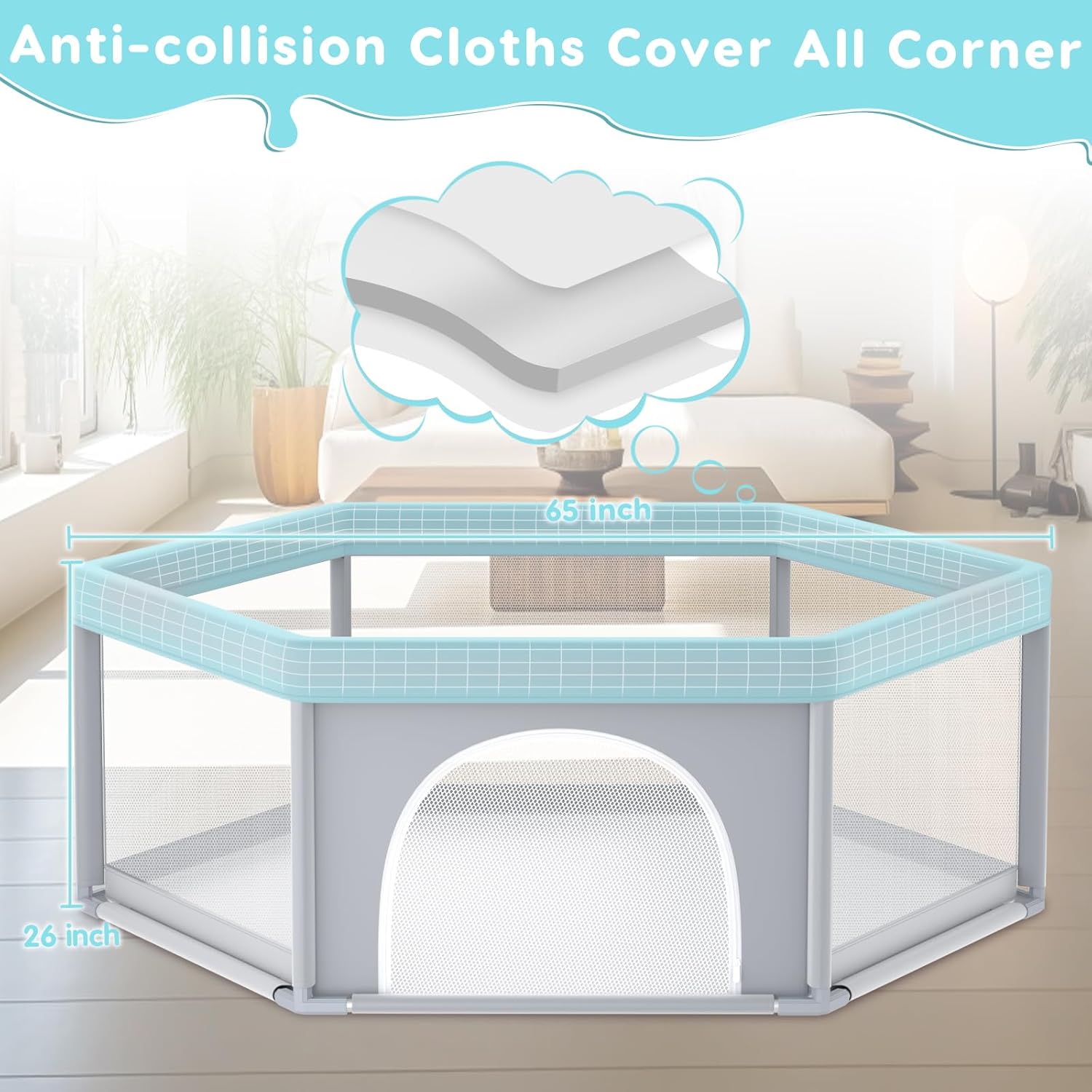 360 ° VISIBILITY – The 360° full imaginative and prescient design of this child playpen permits mother and father to control their baby from any angle. Whether or not within the kitchen or front room, mother and father can simply monitor their kid’s actions. The exterior zip design prevents unintended wandering out of the centre of the playpen.