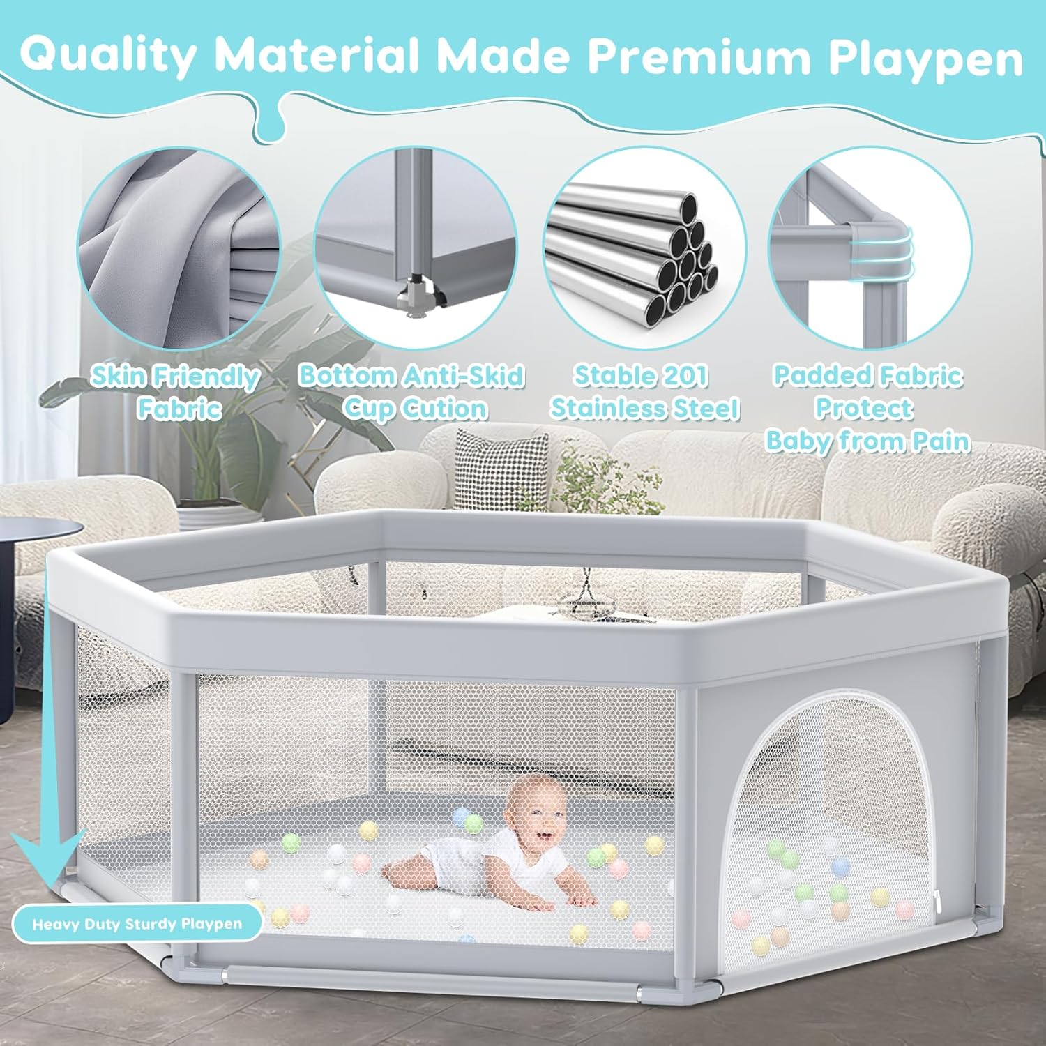 SAFE ROOM -The child playpen is designed to be a protected and pet-free area that’s unlikely to tip over and stop exterior hazards. The sturdy development and suction cups on the underside guarantee most stability and stop accidents.