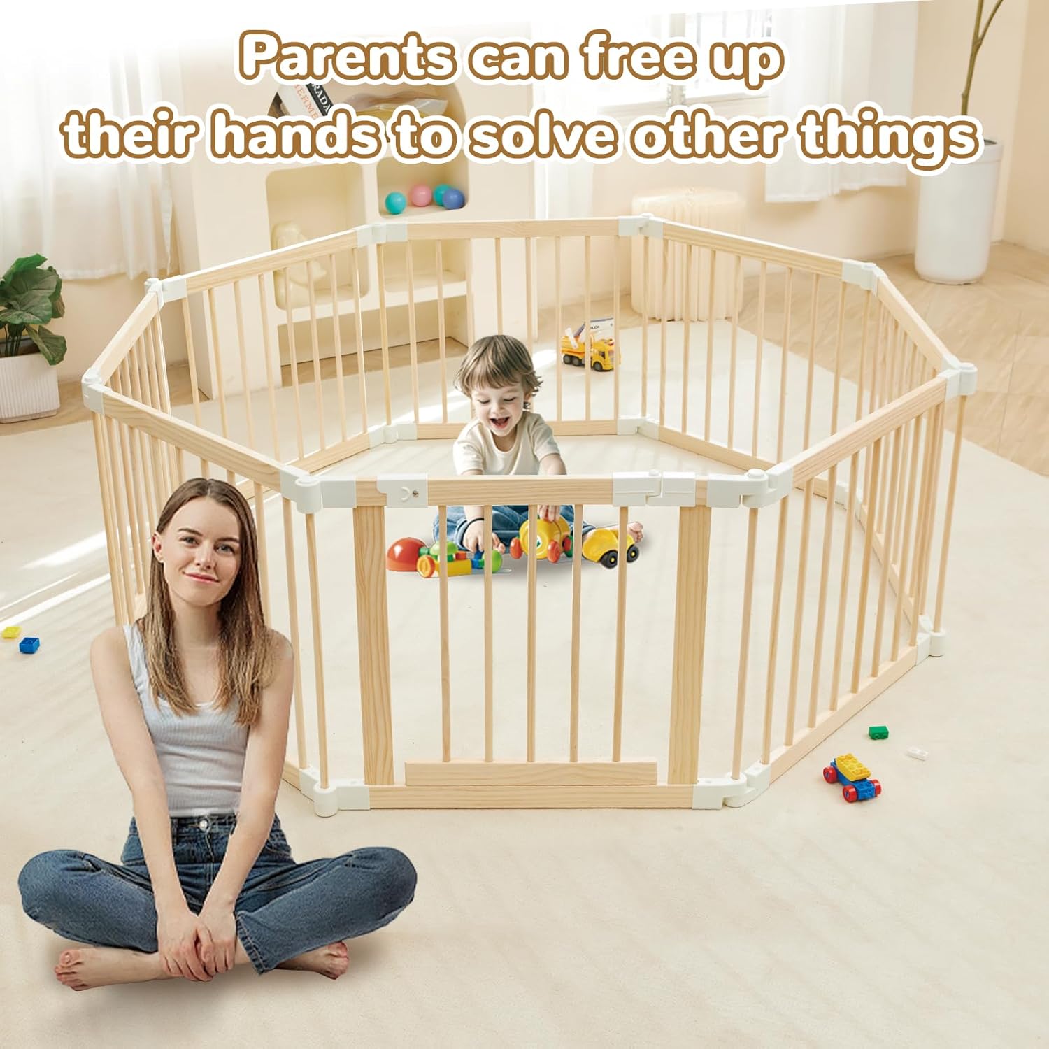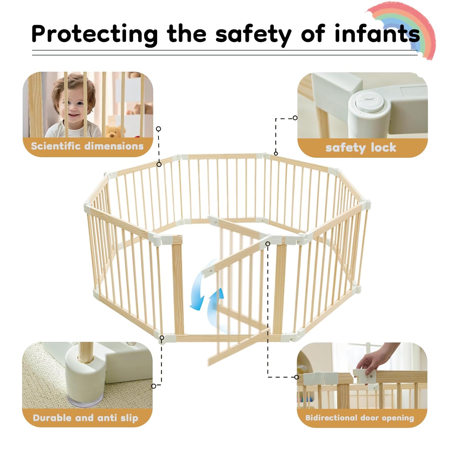 【Scientific and secure design】: The kid security lock ensures that the infant is secure indoors, and oldsters may also simply enter and exit the kid security fence. Simply flip the lock with one hand, and you may simply enter and exit the kid security fence with out squatting. The scientific fence partition dimension design permits mother and father to look at their child’s each transfer whereas they’re busy with different duties. Dad and mom can relaxation assured that their child can play fully within the outsized playpen.