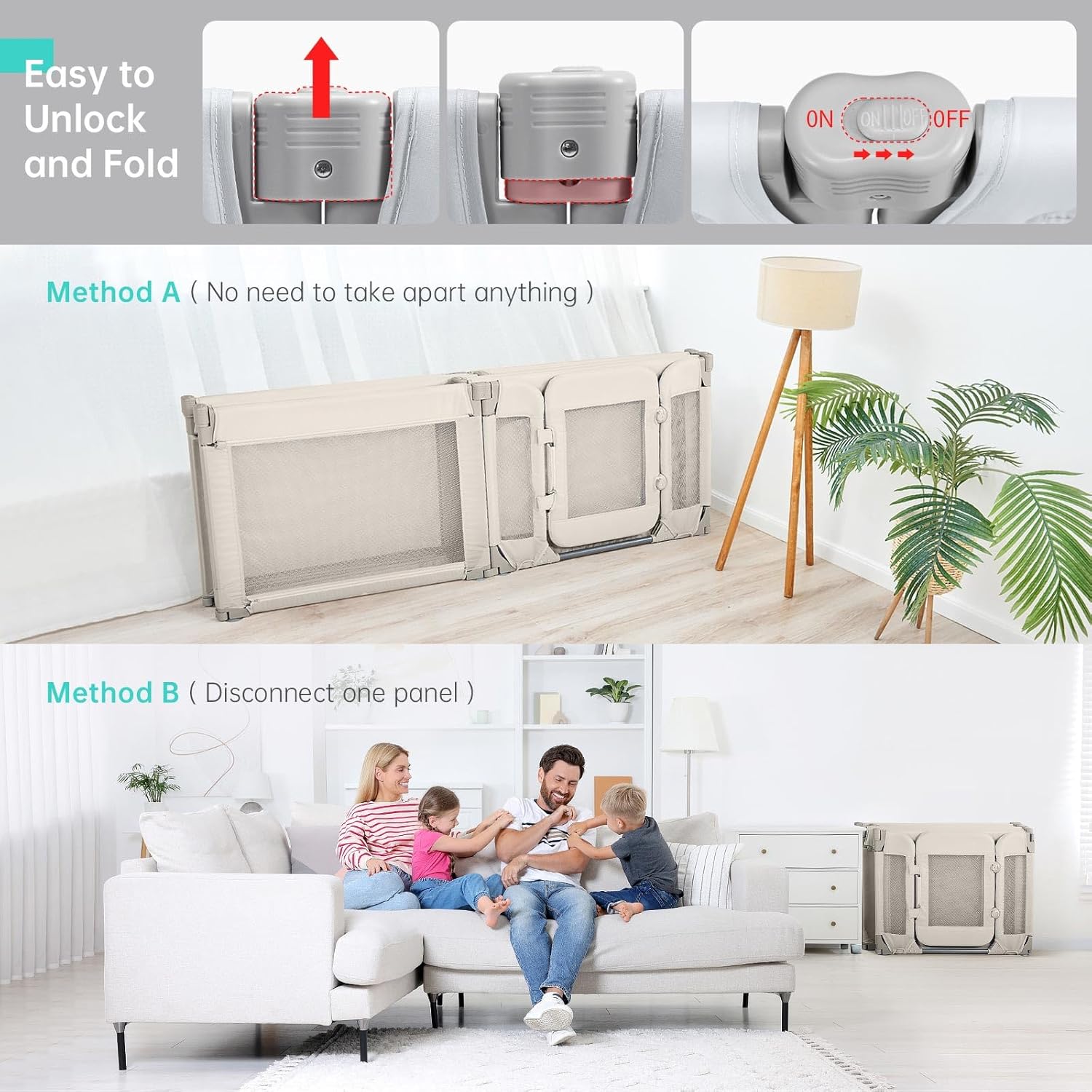 3.360°Imaginative and prescient Design & Interplay with Child-With seen breathable mesh,you possibly can work together together with your child at anytime, give your child an incredible sense of safety. The exterior zipper prevents the infants from pulling it and crawling out the playpen by themselves. 27” top of the play yards stop your child from climbing out. The 2 pull tabs assist child be taught to face and stroll
