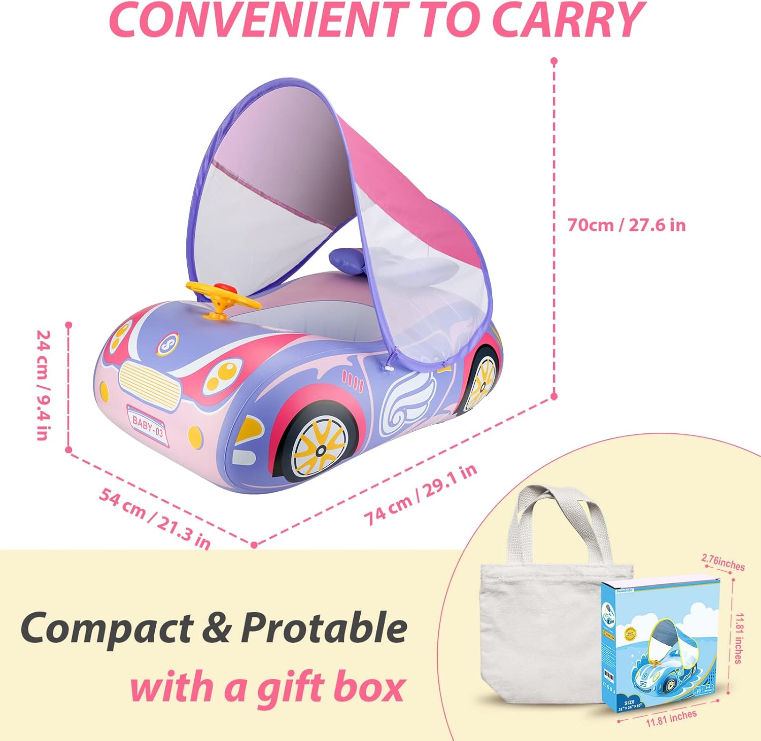 【ATTRACTIVE COOL CAR BOAT SHAPE】 Distinctive car-shaped child pool float with steering wheel and audible horn can rapidly appeal to child’s consideration. Let your child play extra fortunately within the water.