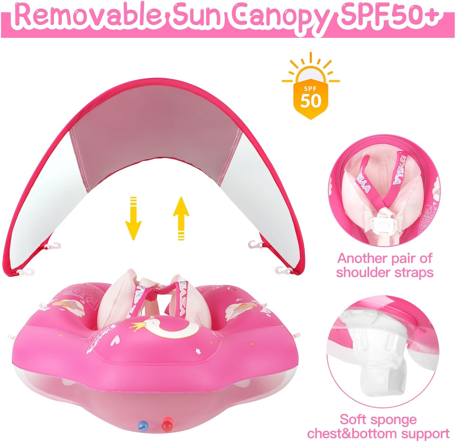 【Detachable UPF50+ Solar Safety Cover】:The newborn swim float is provided with a solar cover that gives UPF 50+ sunscreen impact and defend child’s delicate pores and skin from robust daylight, good for summer time open air. The mesh design on the perimeters of child floatie supplies clear visibility, helps the newborn work together with the guardian whereas swimming, and ventilates to stop overheating.