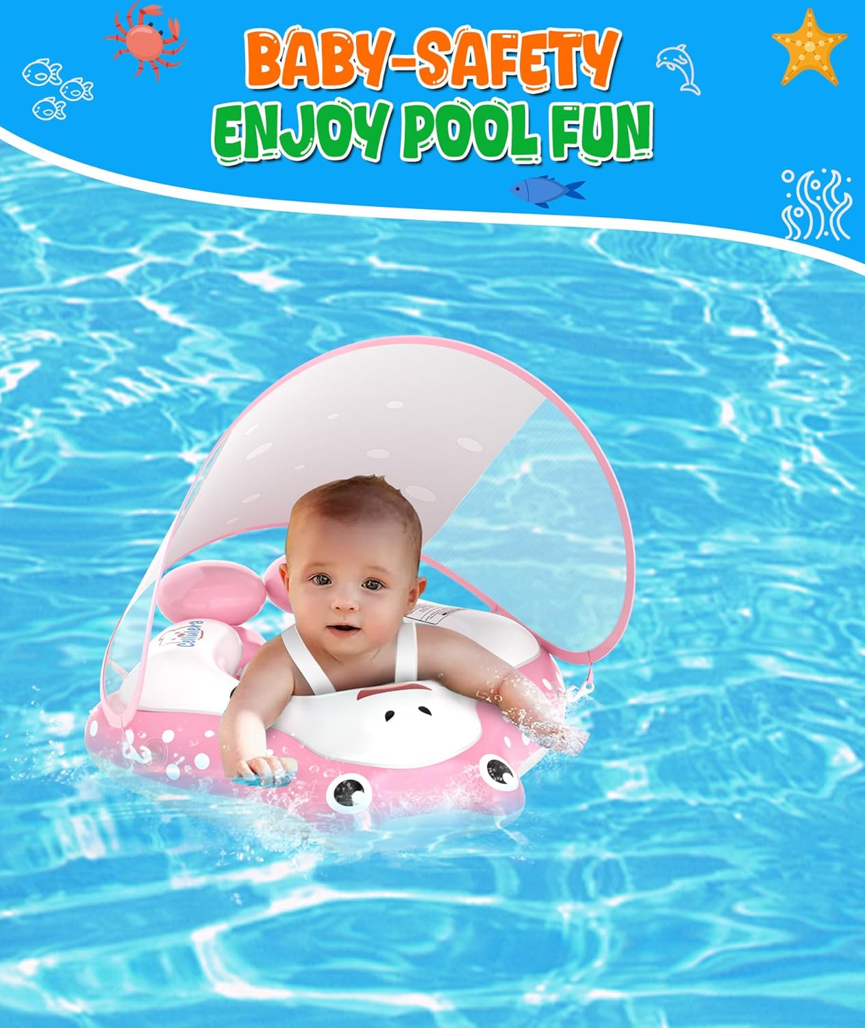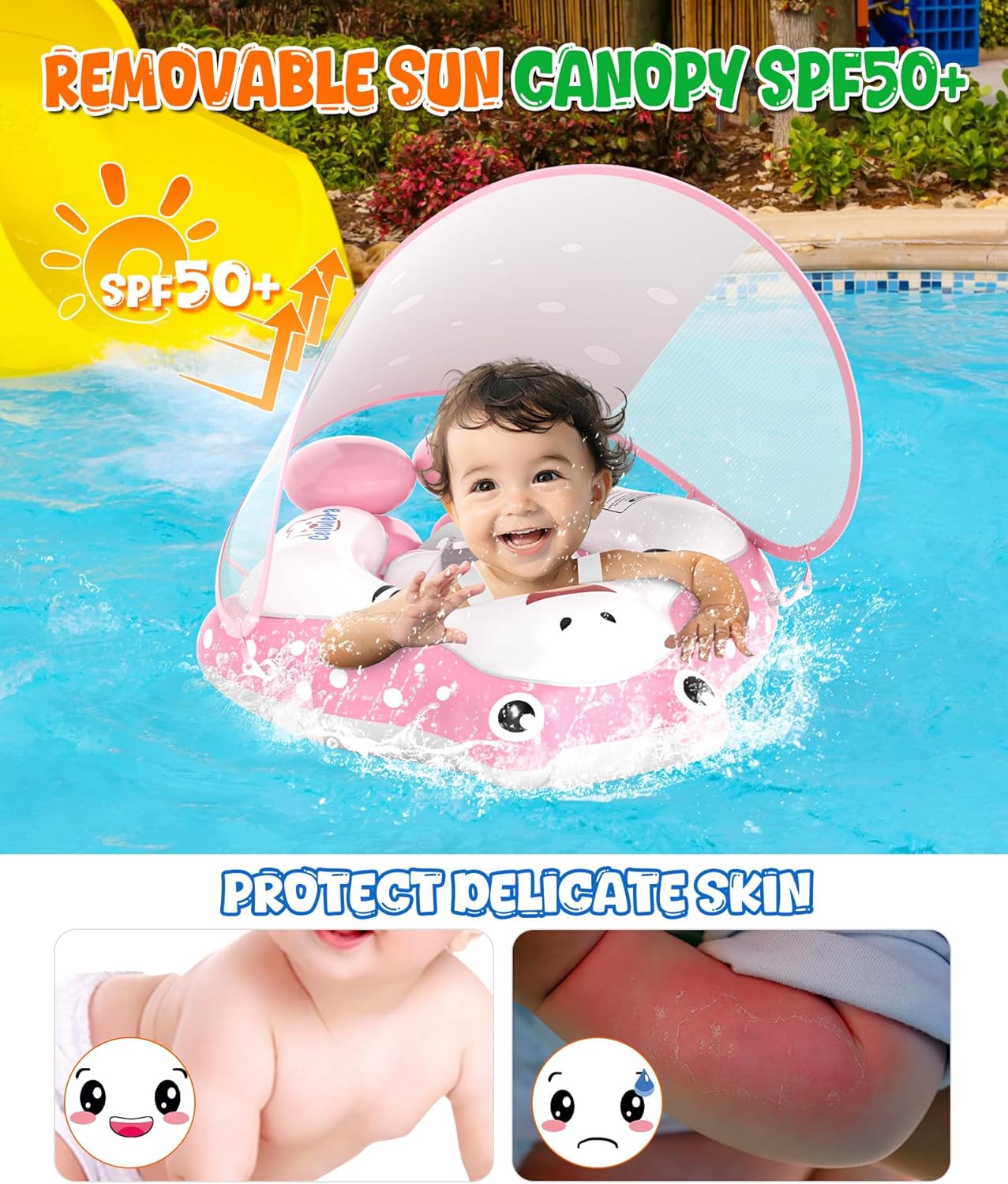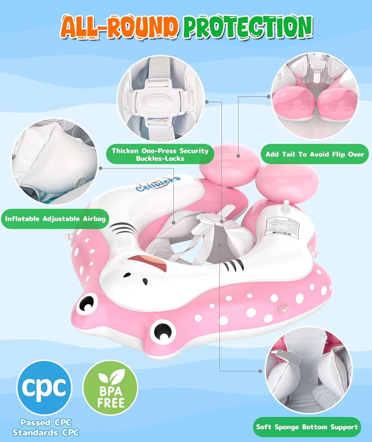Child Pool Float with Cover, Cellulera Inflatable Toddler Pool Float Child Swimming Float, Adjustable Security Seat Add Tail No Flip Over