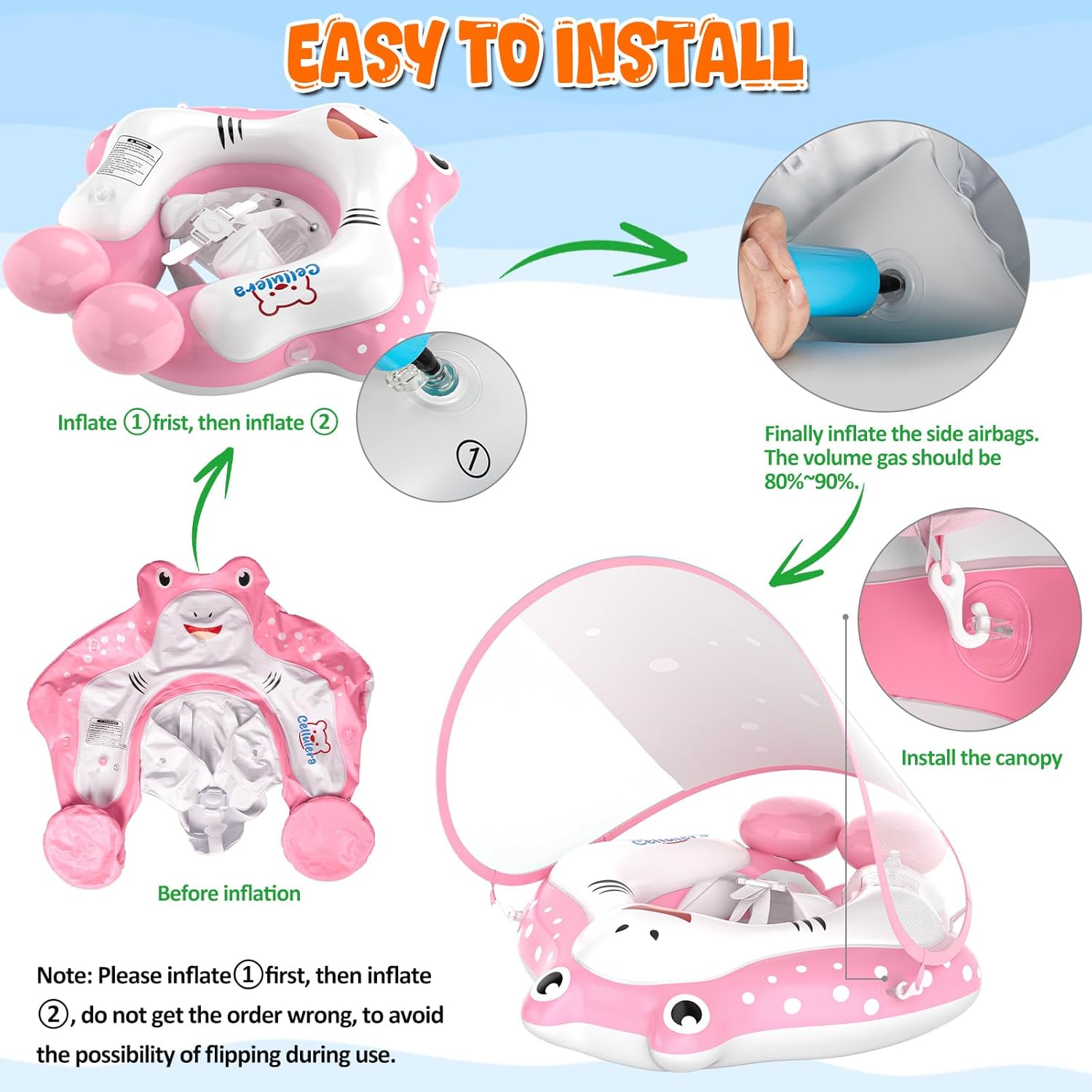 【Consideration】Designed for 2 swim types: backstroke (3-6 months), breaststroke (3-36months), providing a snug and fulfilling water expertise. The child floatie just isn’t life-saving provides, it’s required accompanied by a guardian. To forestall extreme enlargement,please management the inflation saturation of about 80-90% ( should inflate the①air chamber first, then inflate ② ,in any other case,the pool float will rollover when in use)