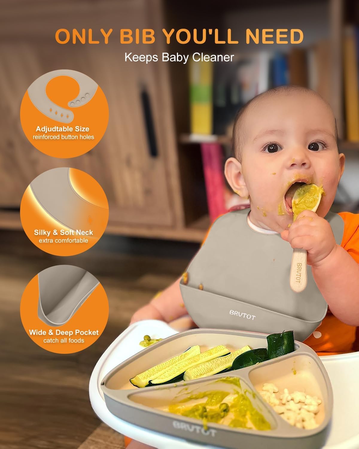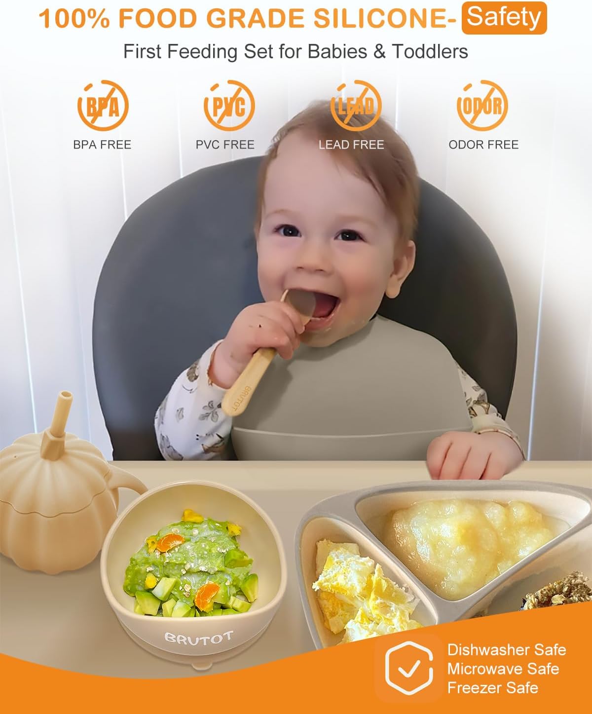 Purposeful & Sturdy: 3-in-1 child coaching cup (7oz) can be utilized as a open cup, sippy straw cup & snack cup, 1 set feeds all; additionally straightforward to carry with handles, and simple to suck the liquid up. Child silicone bib is simple to button and never heavy on the neck, simply rolled as much as carry in a bag to take out! And the toddler divided plate (21oz) and bowl (12oz) are deepened design can maintain extra meals, soup. Our silicone meals feeding set is unbreakable, not straightforward to be corroded and residual cleansing brokers.
