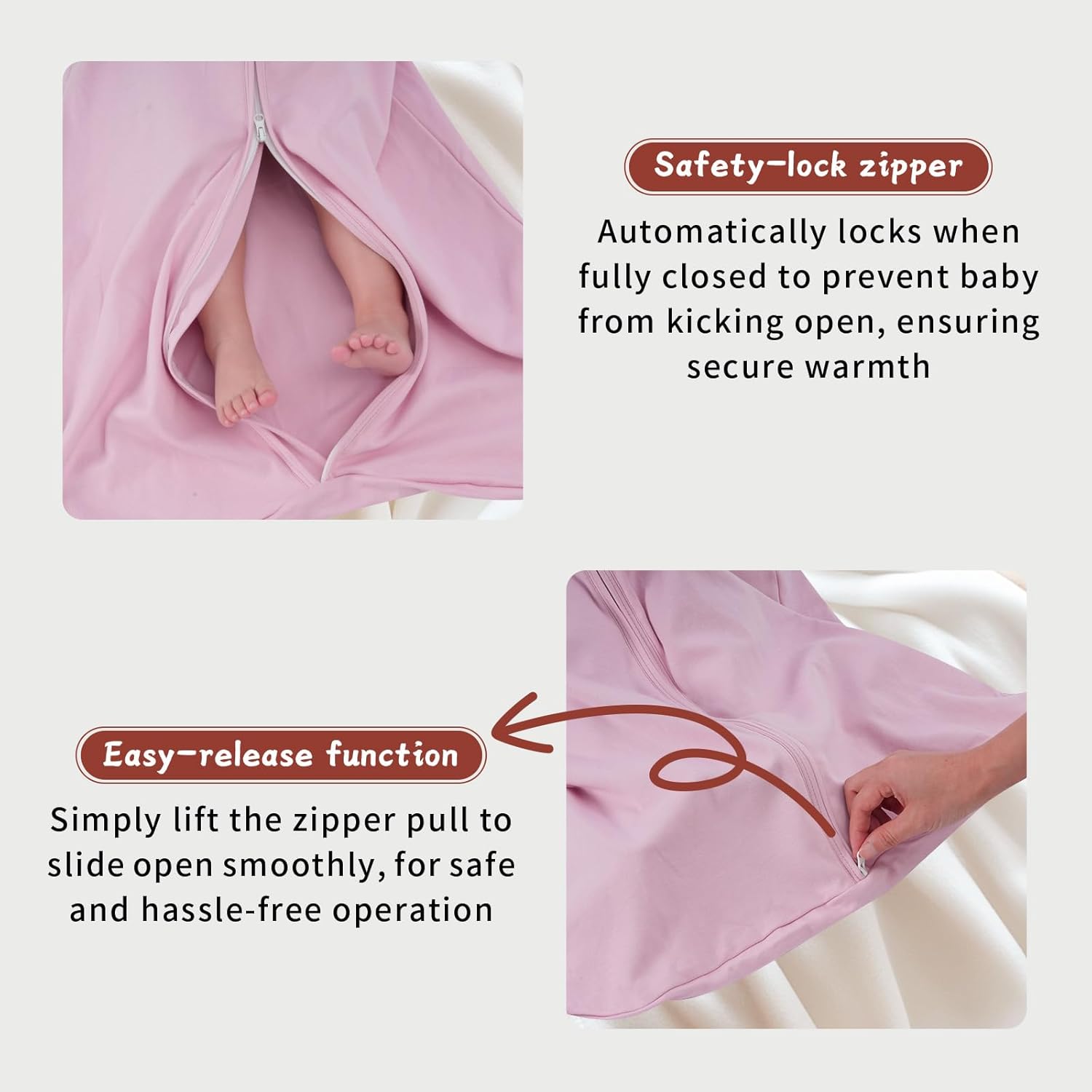 Security-Lock Zip:The sleep sack’s zipper routinely locks when totally closed to stop your child from kicking it open, guaranteeing all-night heat retention. With its easy-release function, merely lifting the zipper pull permits easy one-handed opening for easy nighttime care