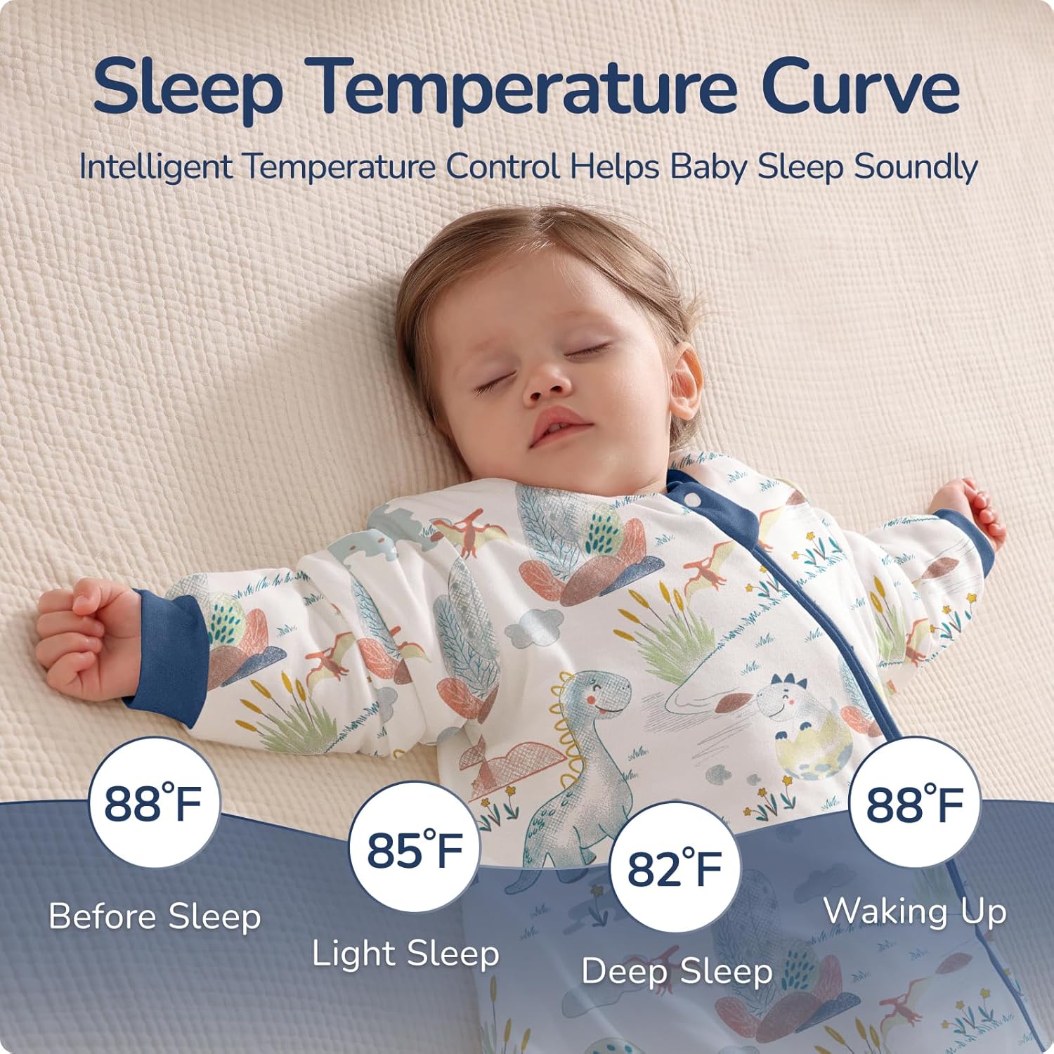 TEMPERATURE SENSING STRIP: Unique Chest Temperature Strip displays your child’s skin-contact temperature. See the studying and regulate their clothes layers with out waking them, making certain consolation and peaceable sleep.