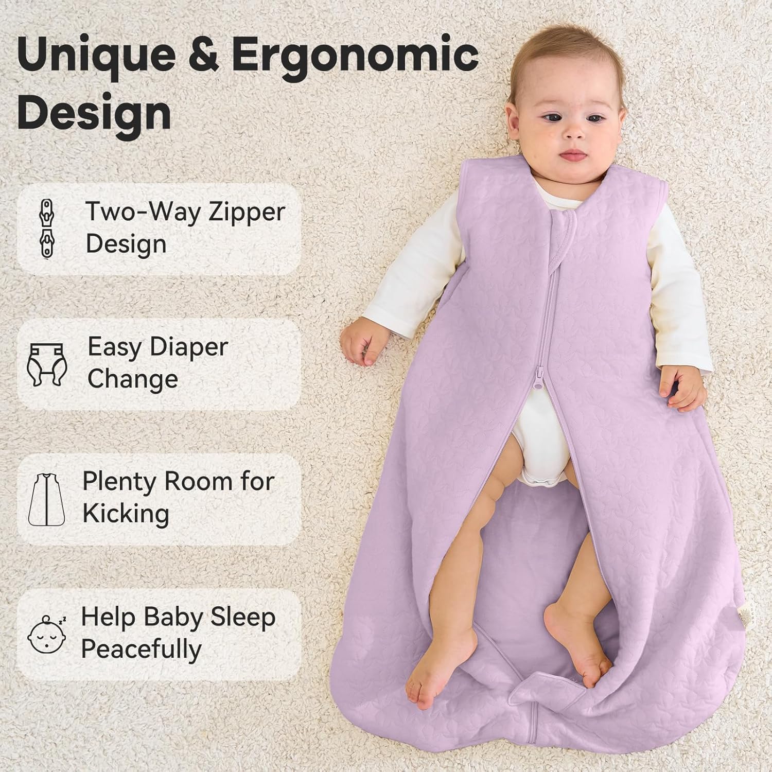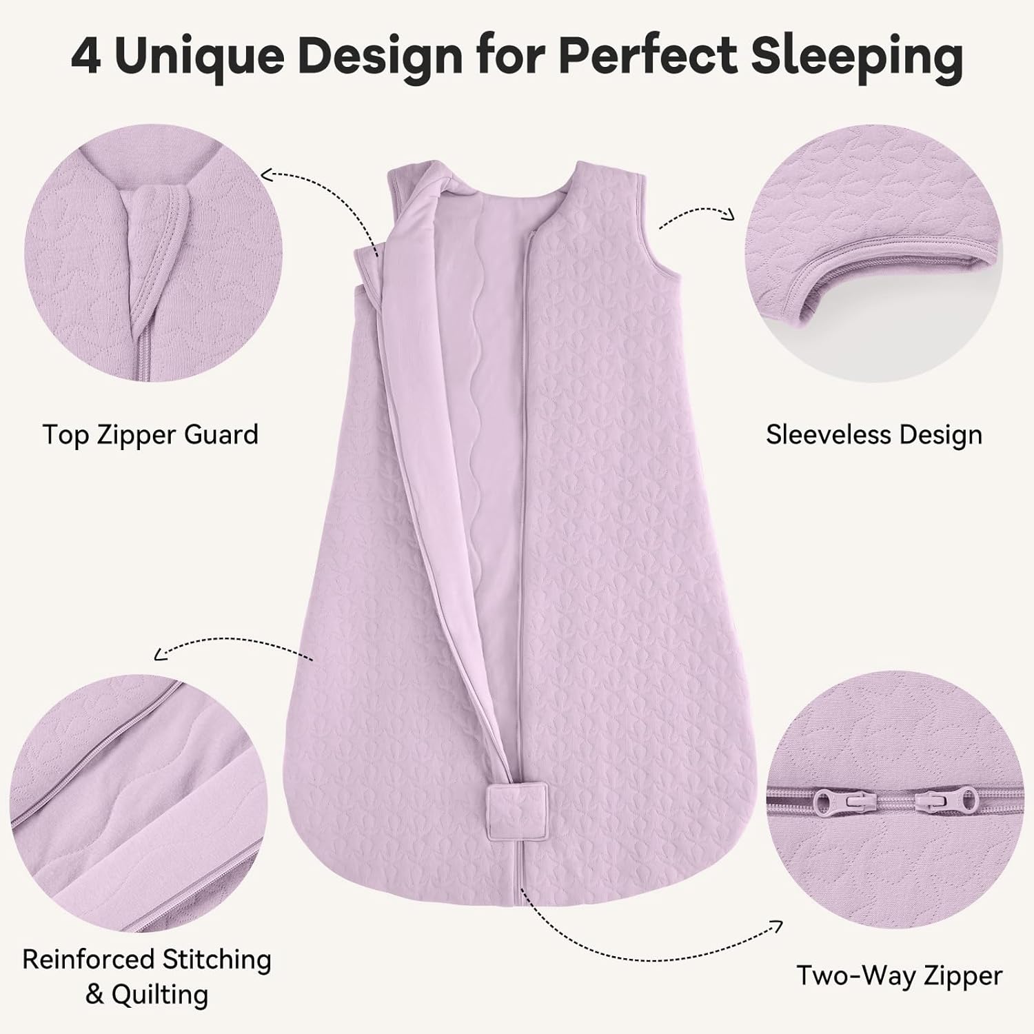 Clean 2-way Zipper: Double zipper permits for straightforward dressing and handy diaper altering with out disturbing child whereas sleeping. High-quality zippers are clean and won’t get caught even after getting used many occasions. Zipper guard of sleep sack can defend the infant’s jaw from scratches.