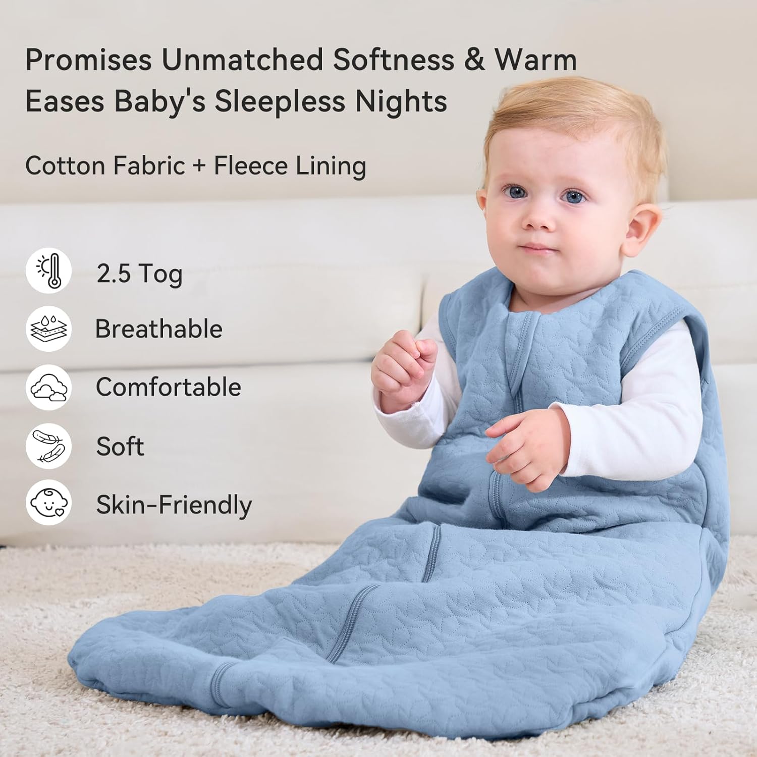 Heat 2.5 Tog: Manufactured from 100% cotton material and fluffy polyester filling, our winter sleep sack is tremendous gentle and skin-friendly to child’s delicate pores and skin. 2.5 TOG sleep sacks are appropriate for chilly winter and room temperatures from 61℉ – 68℉, retaining your baby heat and comfy.