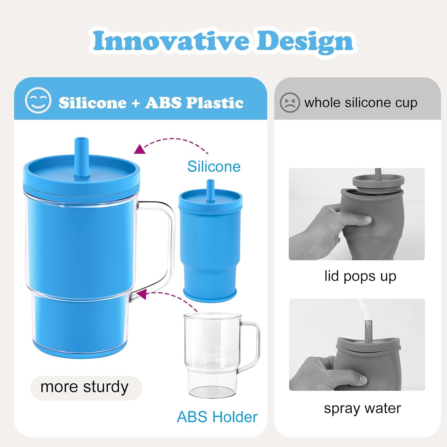 ABS Plastic Holder: The ABS plastic outer completely solves the issue of soppy silicone cups all the time being simply squeezed by infants, inflicting the lid to pop up or spray water.